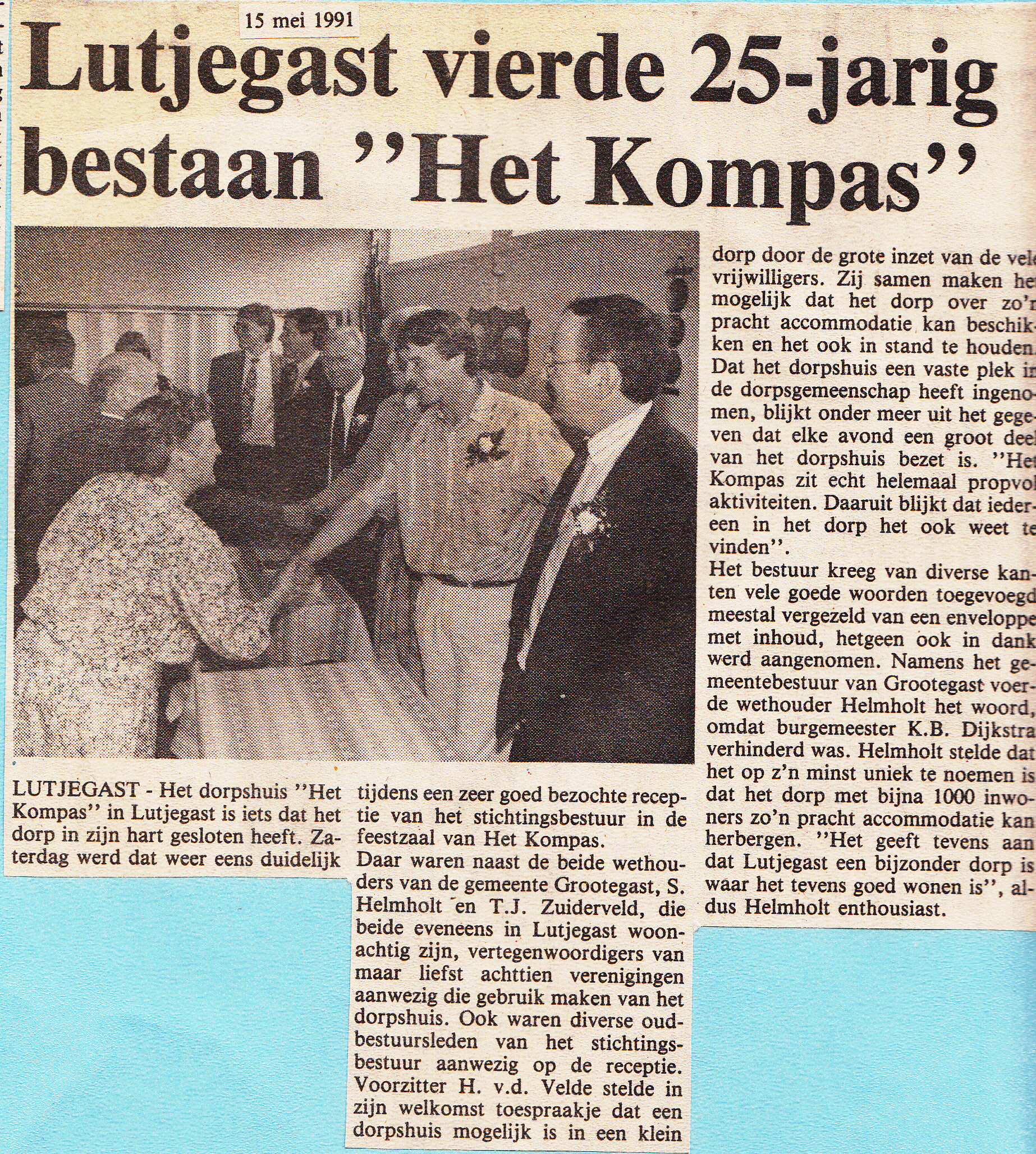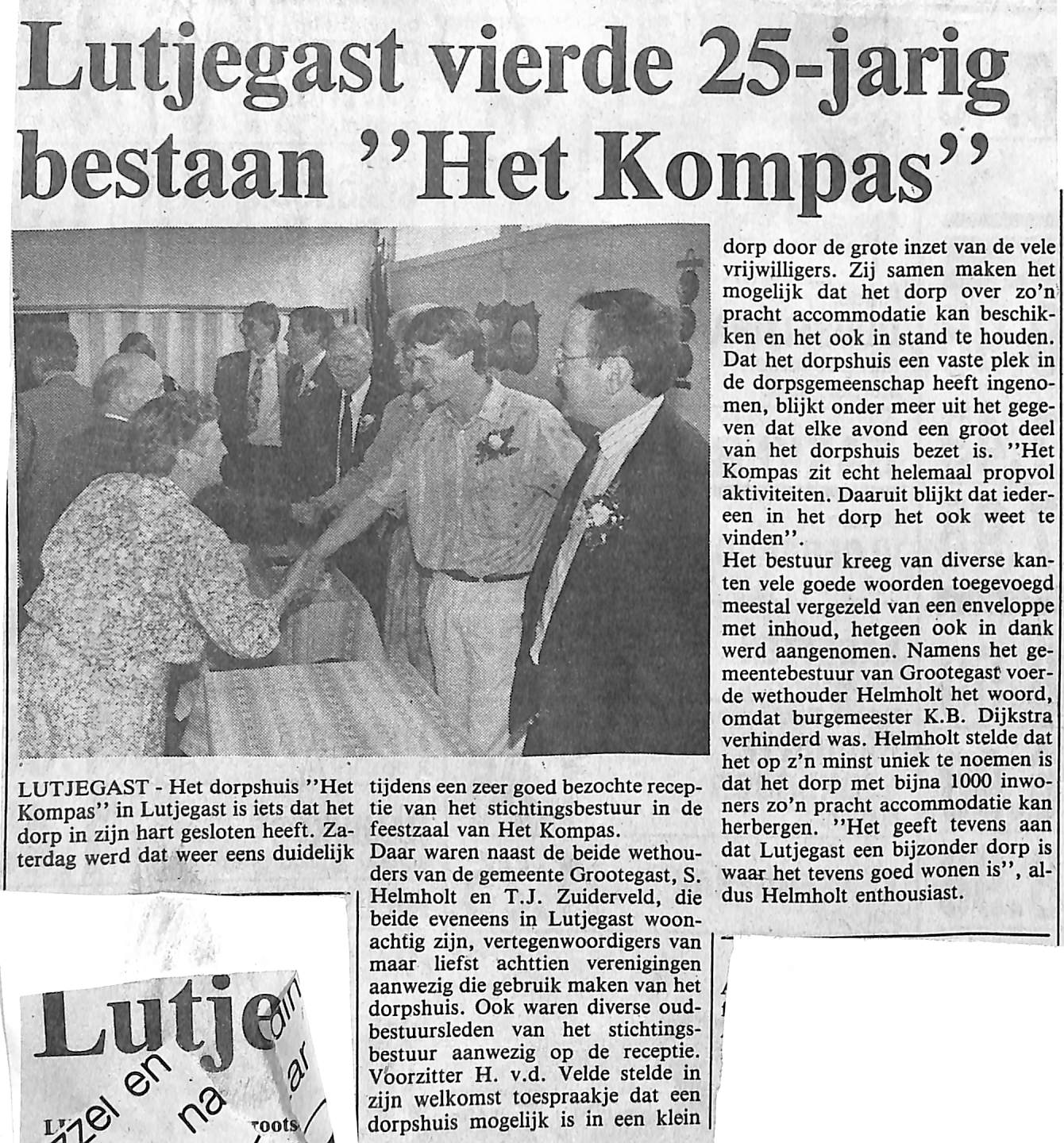 25-jarig jubileum dorpshuis 't Kompas; S. Helmholt, T. J. Zuiderveld, H. v/d Velde, K. B. Dijkstra