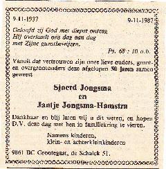 Sjoerd Jongsma en J. Hamstra gehuwd