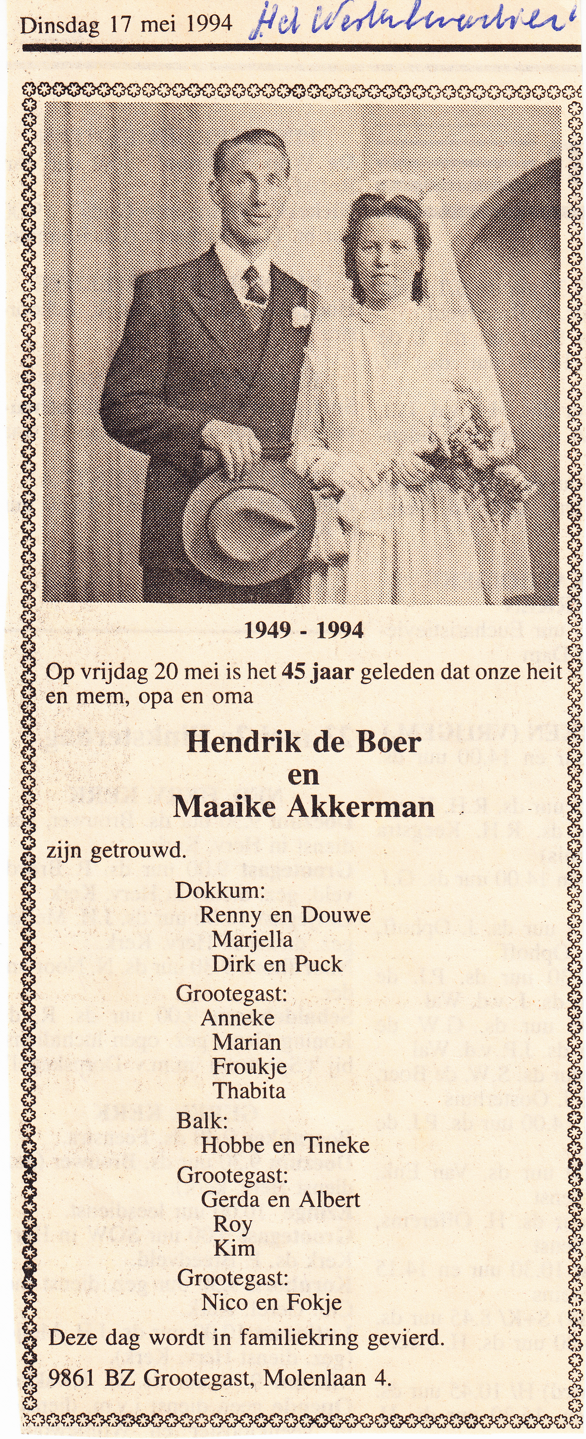 Gerrit de Boer, J. van der Es-Kits, E. van der Es, I.I.Stokroos, G. Stokroos-de Vries, Anna Tiemersma,