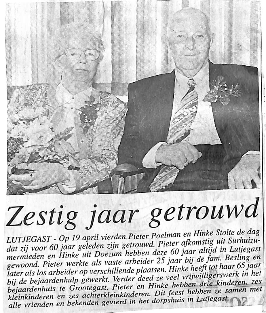 Pieter Poelman en Hinke Stolte 60 jaar getrouwd