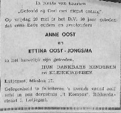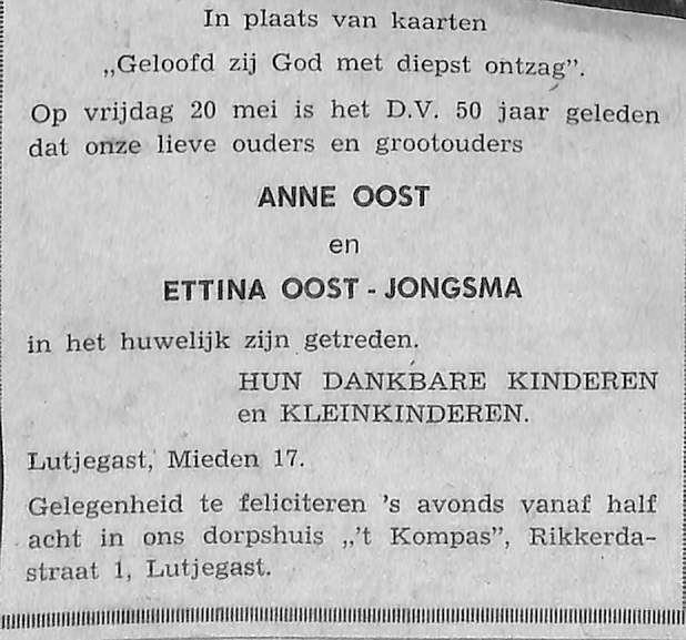 20 mei 1947 gehuwd Anne Oost en Ettina Jongsma, Mieden 17