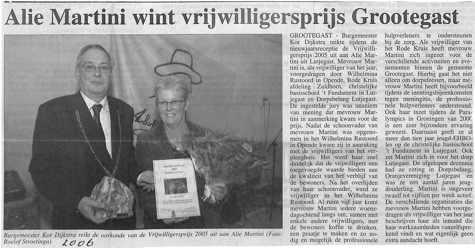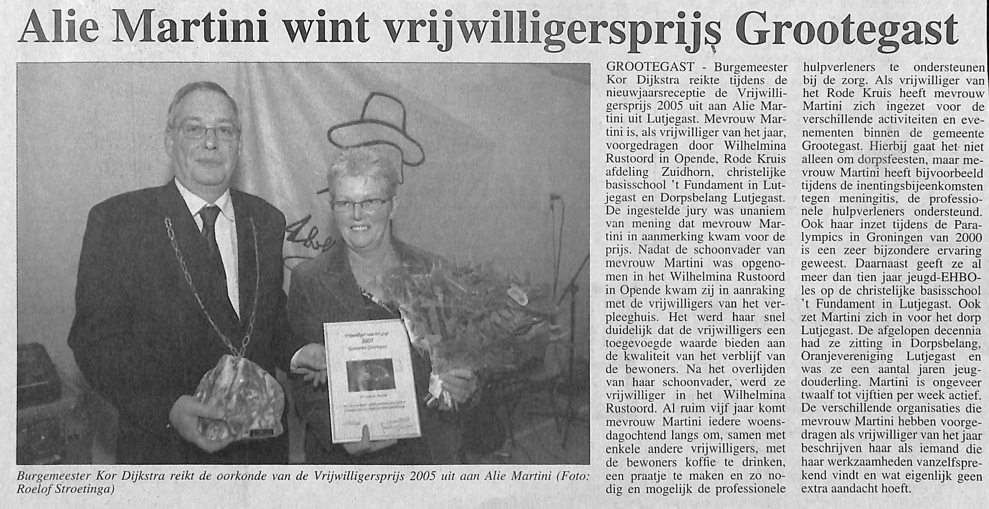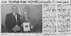 Alie Martini wint vrijwilligersprijs 2005 uitgereikt door K. Dijkstra