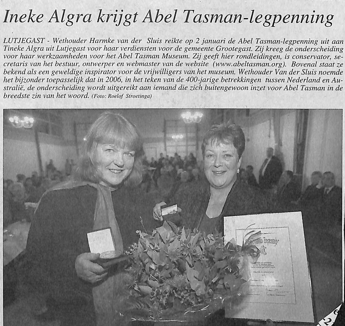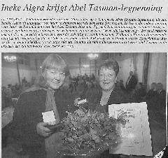 Ineke Algra krijgt een Abel Tasman-legpenning