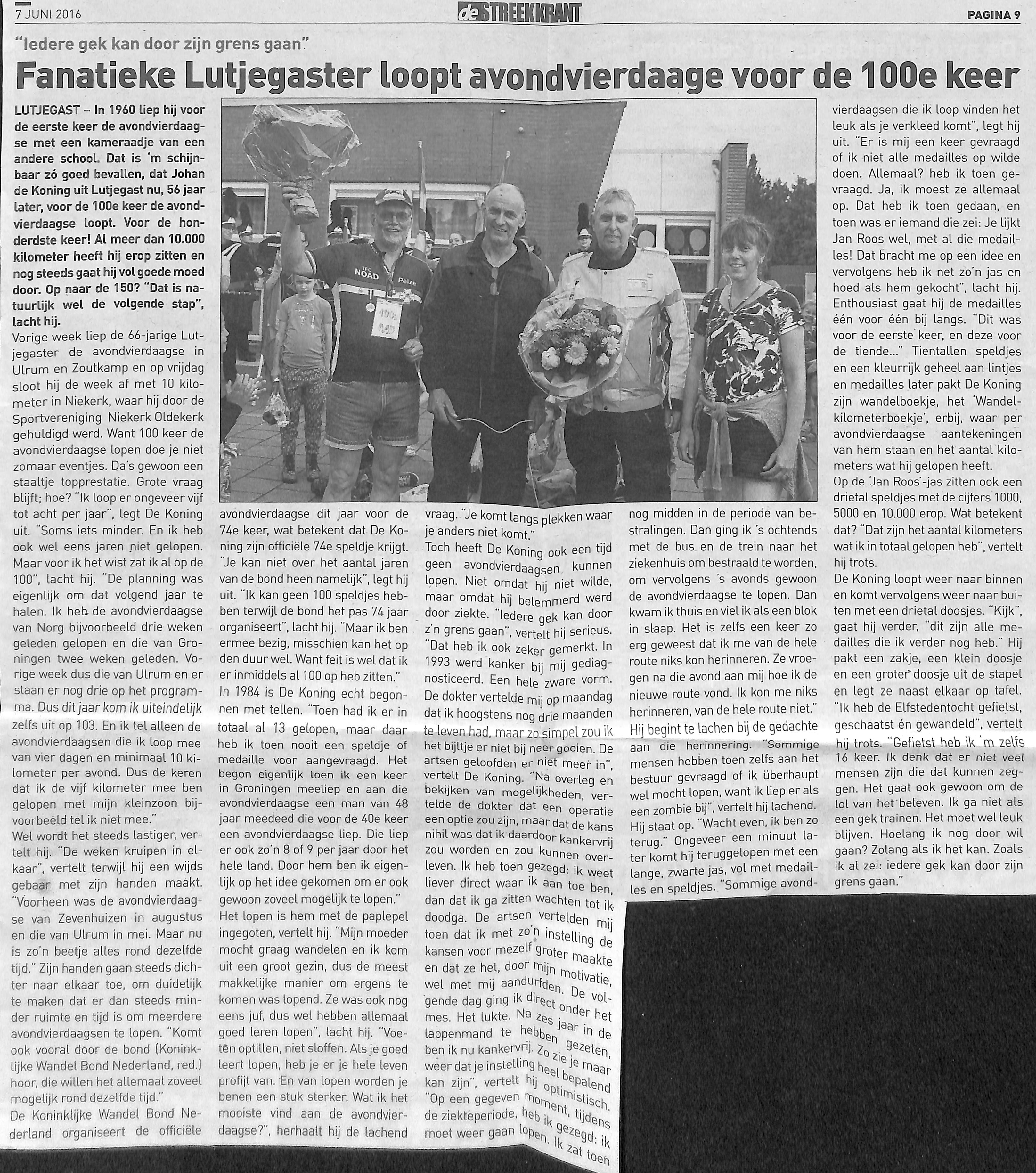 Johan de Koning liep voor de 100e keer een avondvierdaagse in 56 jaar.