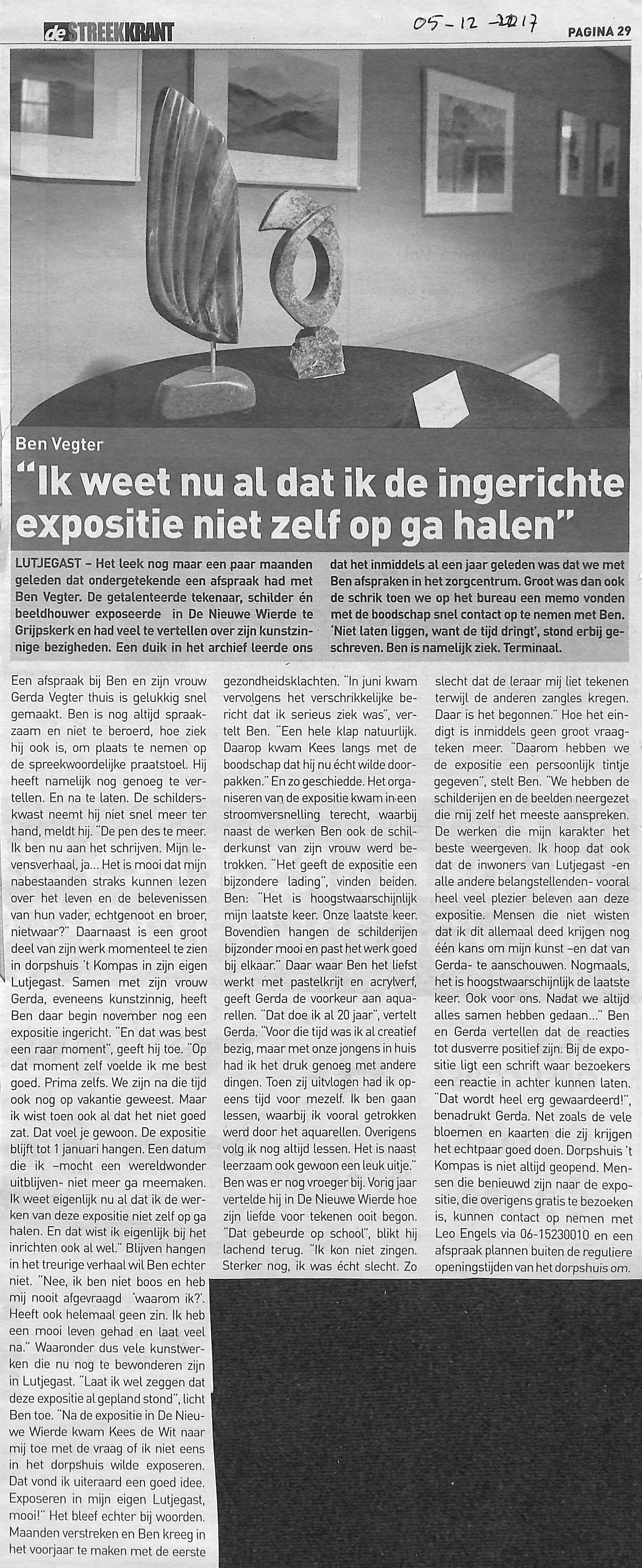 Expositie van schilderijen, beelden ed van Ben Vegter en Gerda Holtrop.