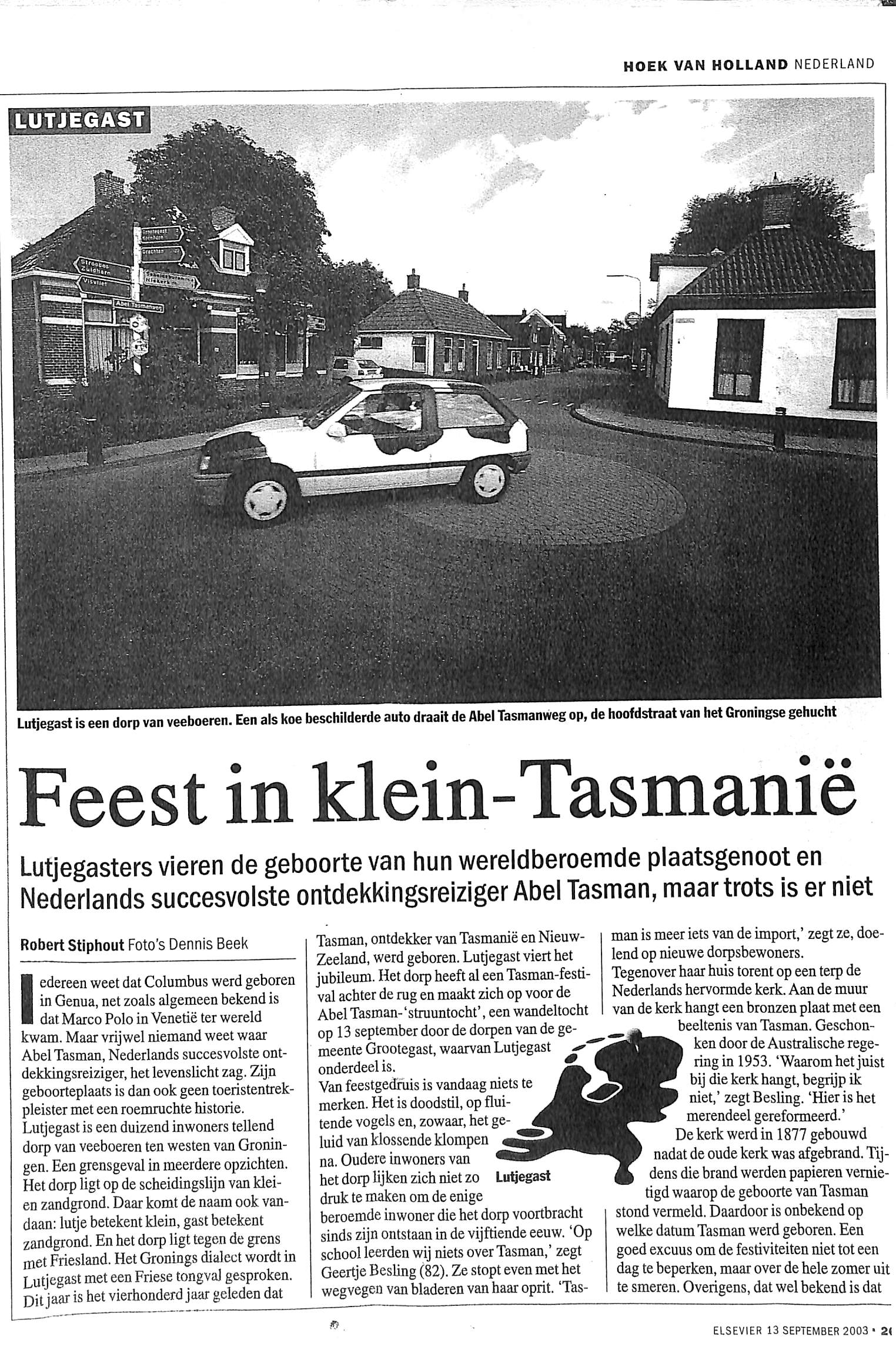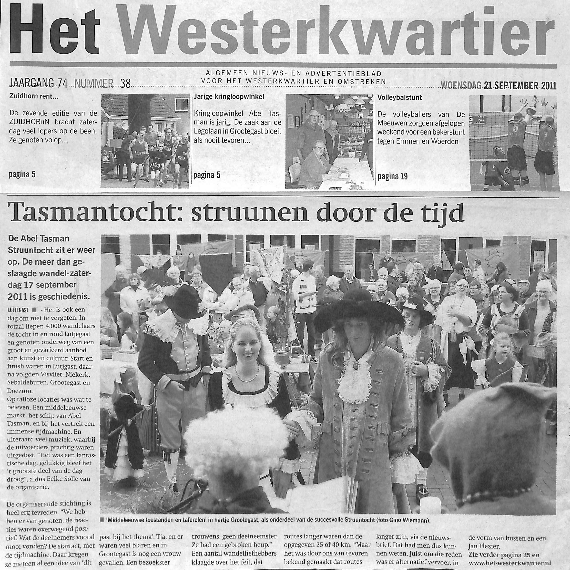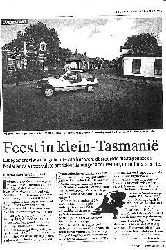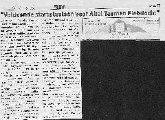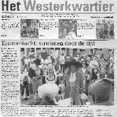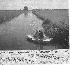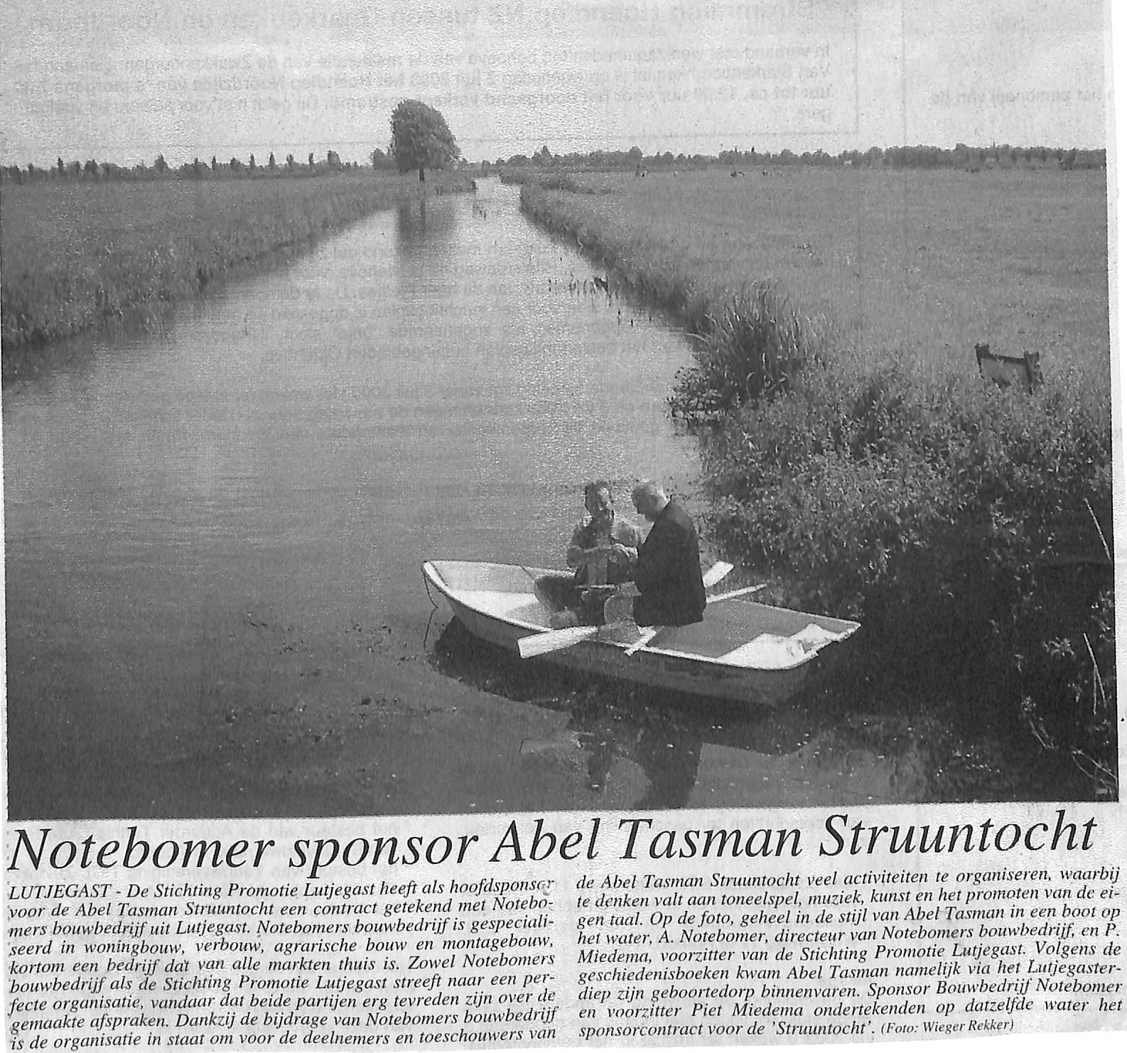 Piet Miedema als organisator en Albert Notebomer komen sumbolisch het dorp binnenvaren. Ze ondertekenen op het water in de boot het contract.