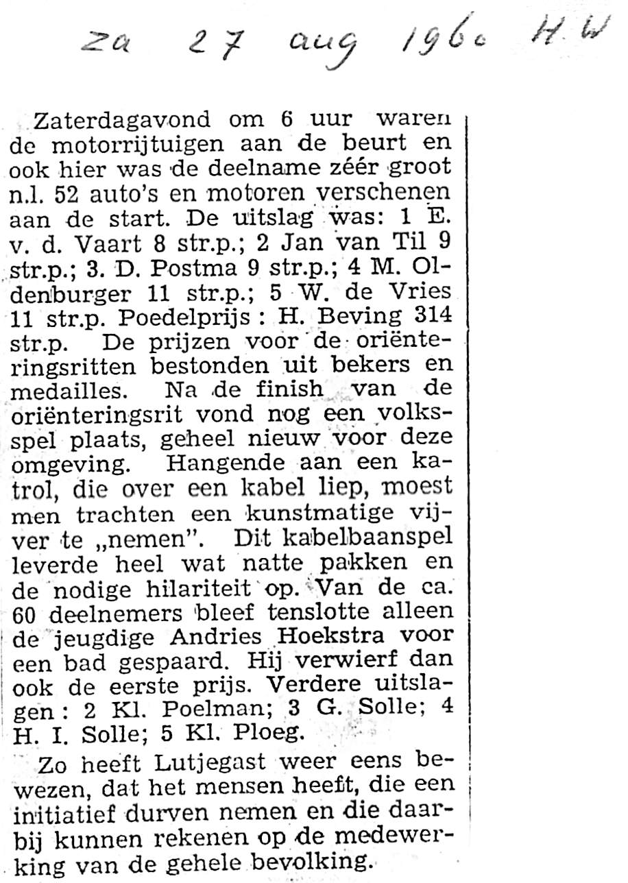 bromfietsrace, voetbalwedstrijd, volksspelen, gezelschap Tetman de Vries, beat-show, kindercircus Saranti, oriënteringsritten voor wielrijders en auto's