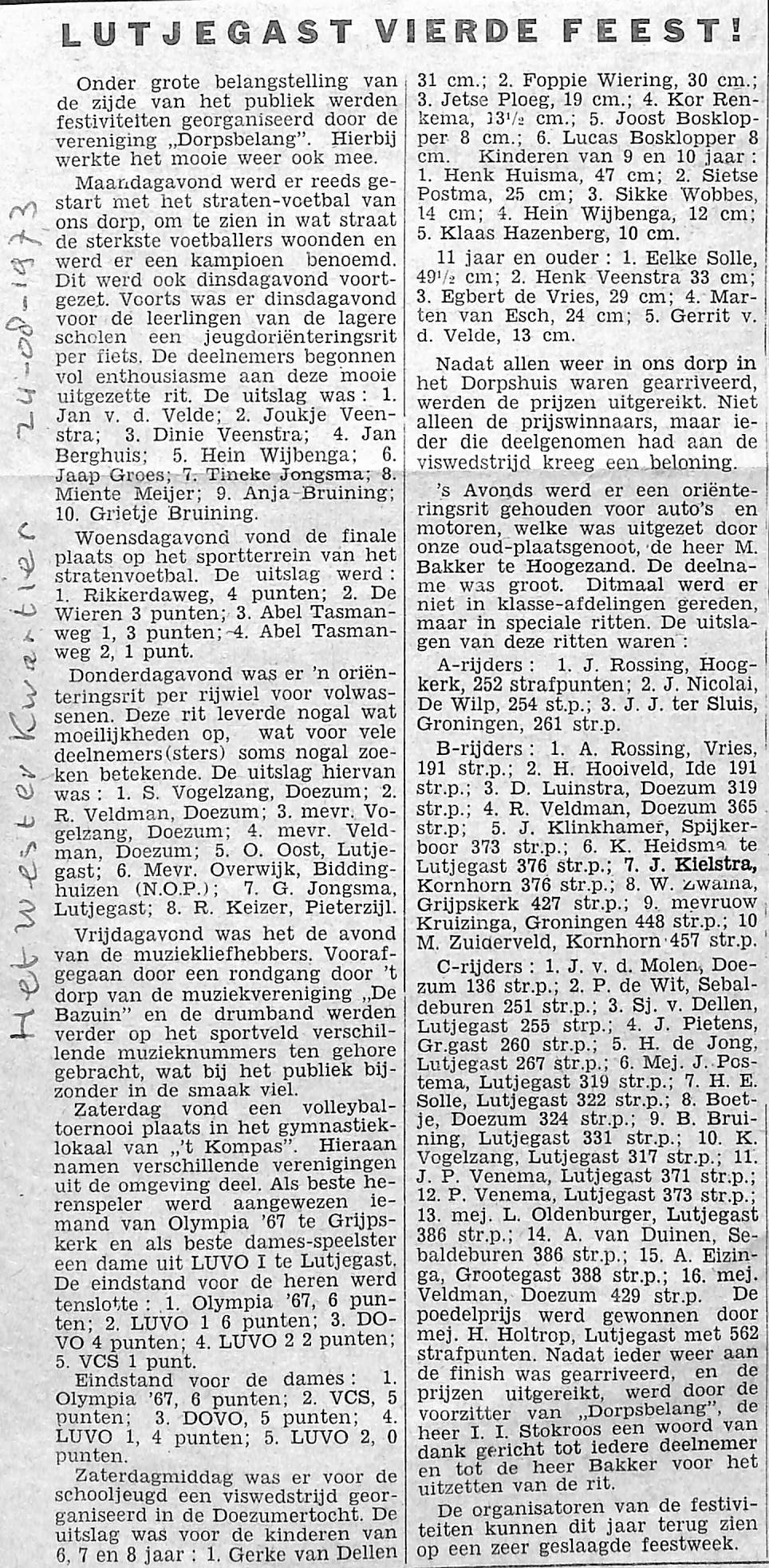 Uitslagen met namen van alle festiviteiten