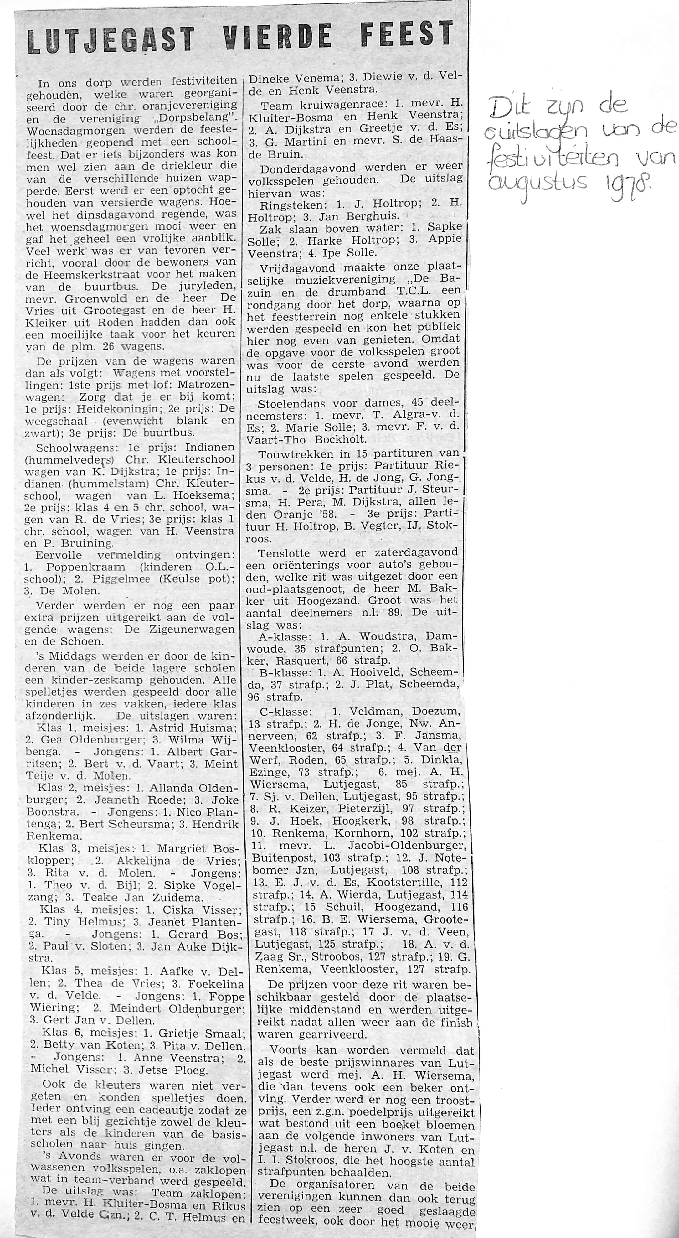Alle uitslagen van de feestweek 1978
