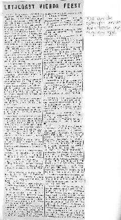Eerste feestavond van de festiviteiten met opvoering blijspel "Onder valse vlag". ds. Scheeres leidde de avond