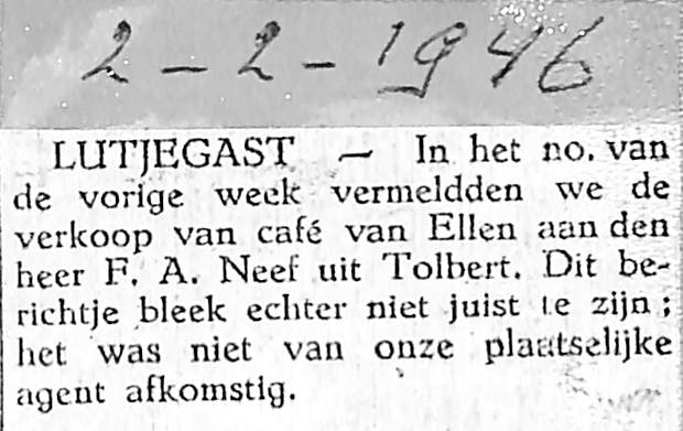 Cafe Ellen was niet verkocht aan F.A. Neef