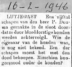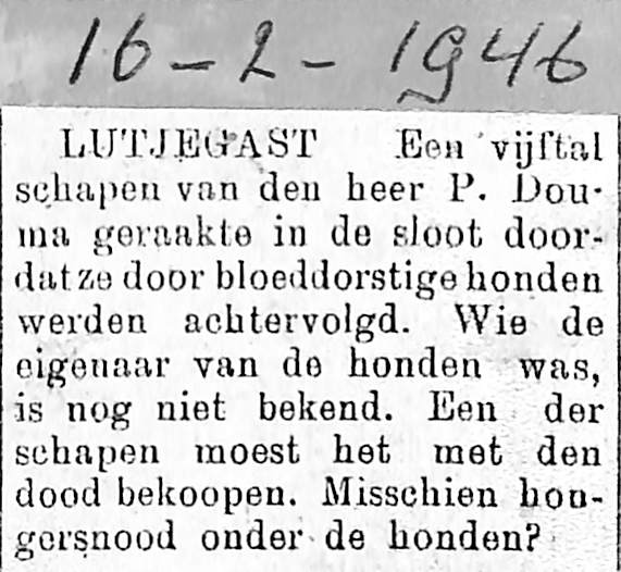 bloeddorstige honden jagen 5 schapen in de sloot, 1 schaap dood