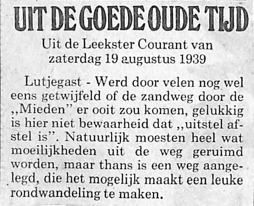 Mieden is de weg aangelegd in 1939 als zandweg.