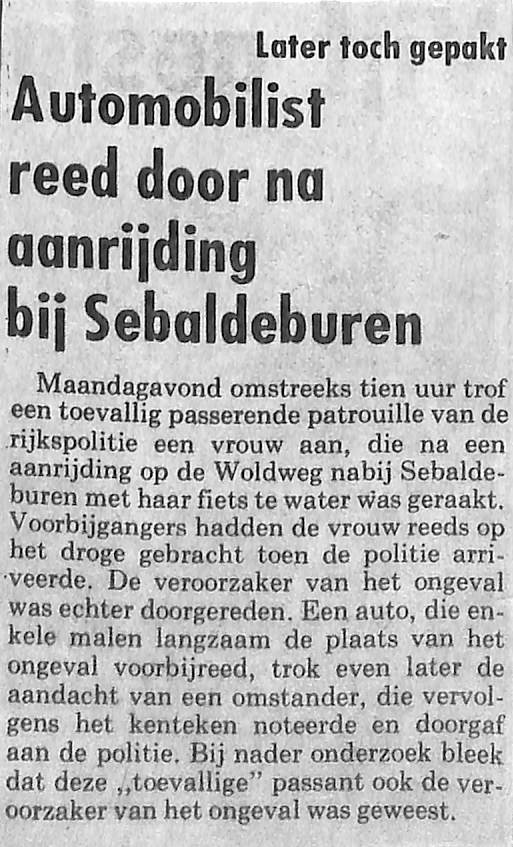 De dader reed door maar kwam weer langs om te kijken. Werd dus toch gepakt.