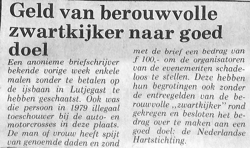 iemand stuurt brief met f 100 omdat hij/zij zonder te betalen op ijsbaan was geweest.