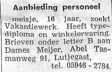 meisje 16, zoekt vakantiebaantje, ze heeft typediploma