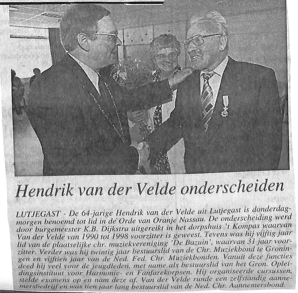 Hendrik v.d. Velde, lid van Oranje Nassau