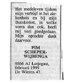 dank voor medeleven, Pim Scheper-Wijbenga, De Wieren 47