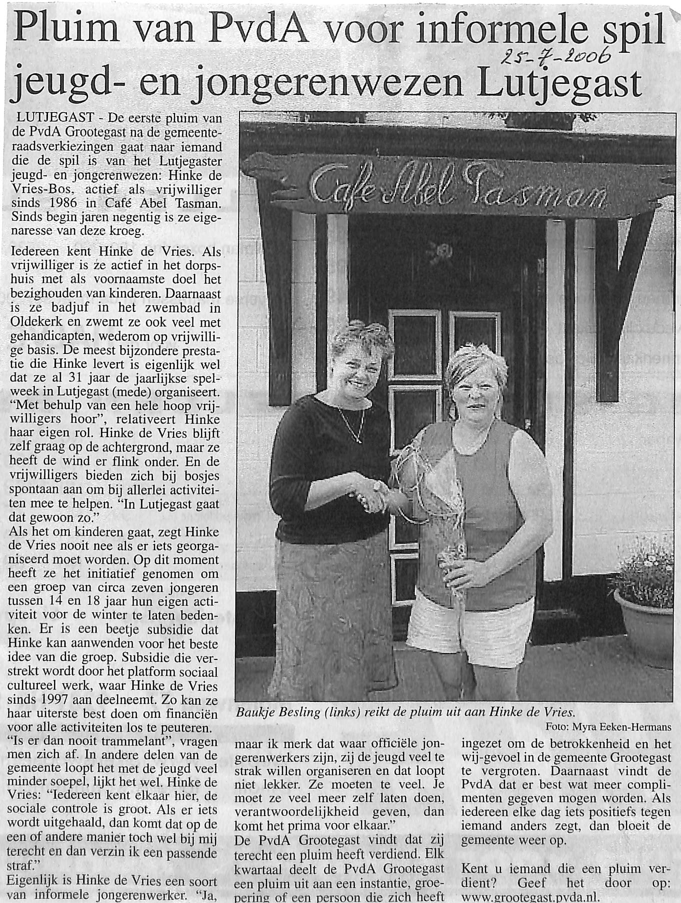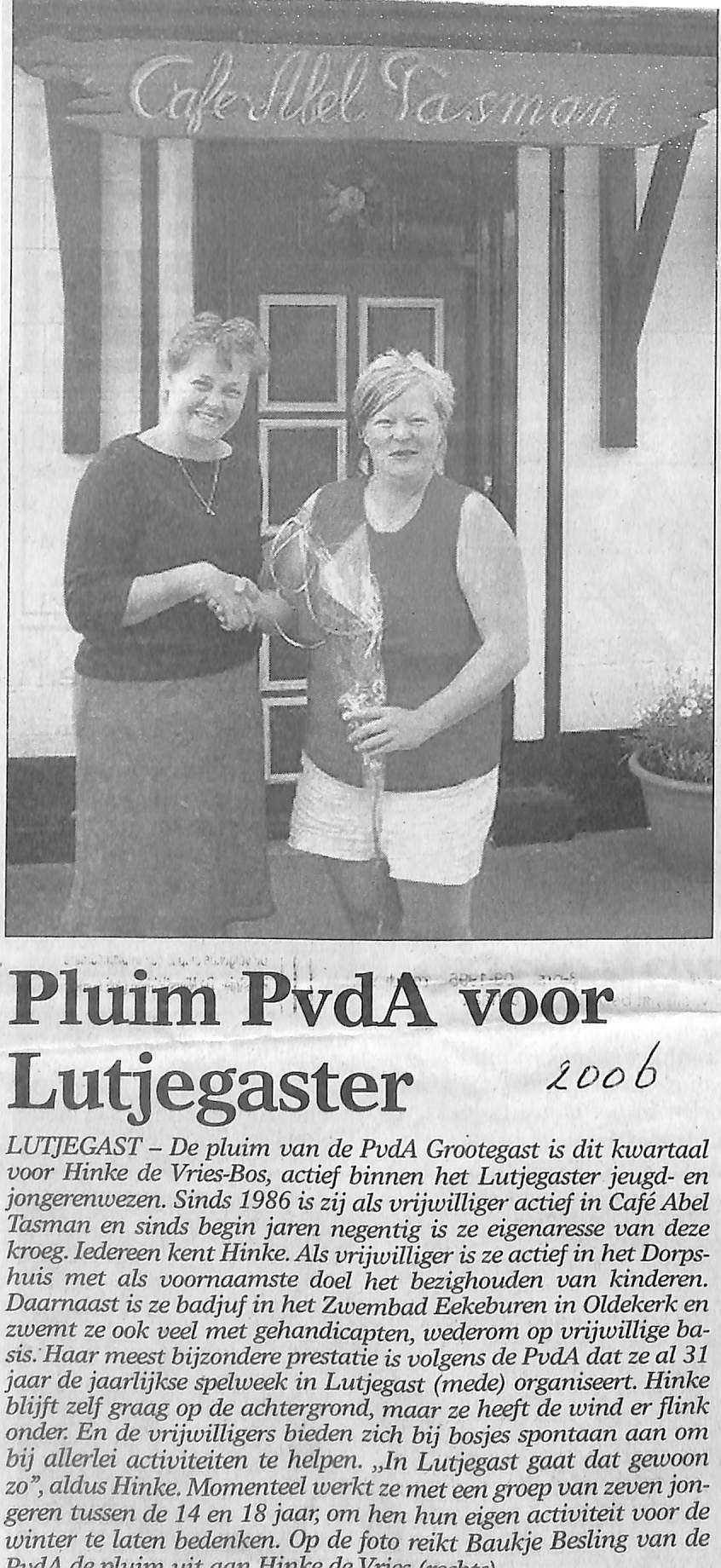 Voor Hinke de Vries-Bos voor veel werk wat ze verricht.