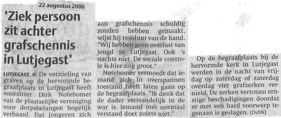 Vier graven beschadigd op kerkhof bij de Hervormde Kerk.