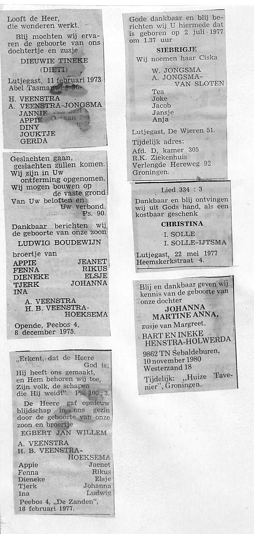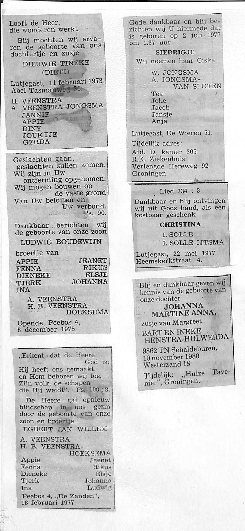geboren Dieuwe Tineke Veenstra, Jongsma