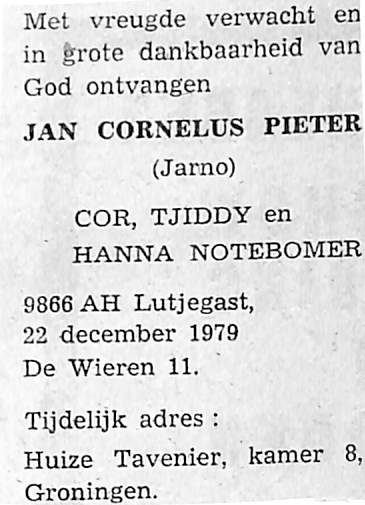 geboren Jan Cornelis Pieter Notebomer, 22-12-1979