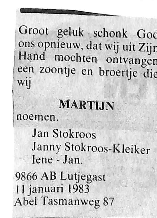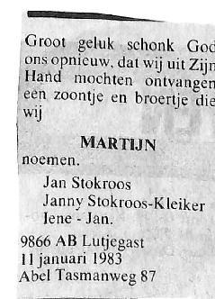 Geboren, Martijn, Jan, Janny en Iene en Jan Stokroos