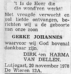 geboren Gerke Johannes van Dellen.; Dirk van Dellen, Harma van Dellen.