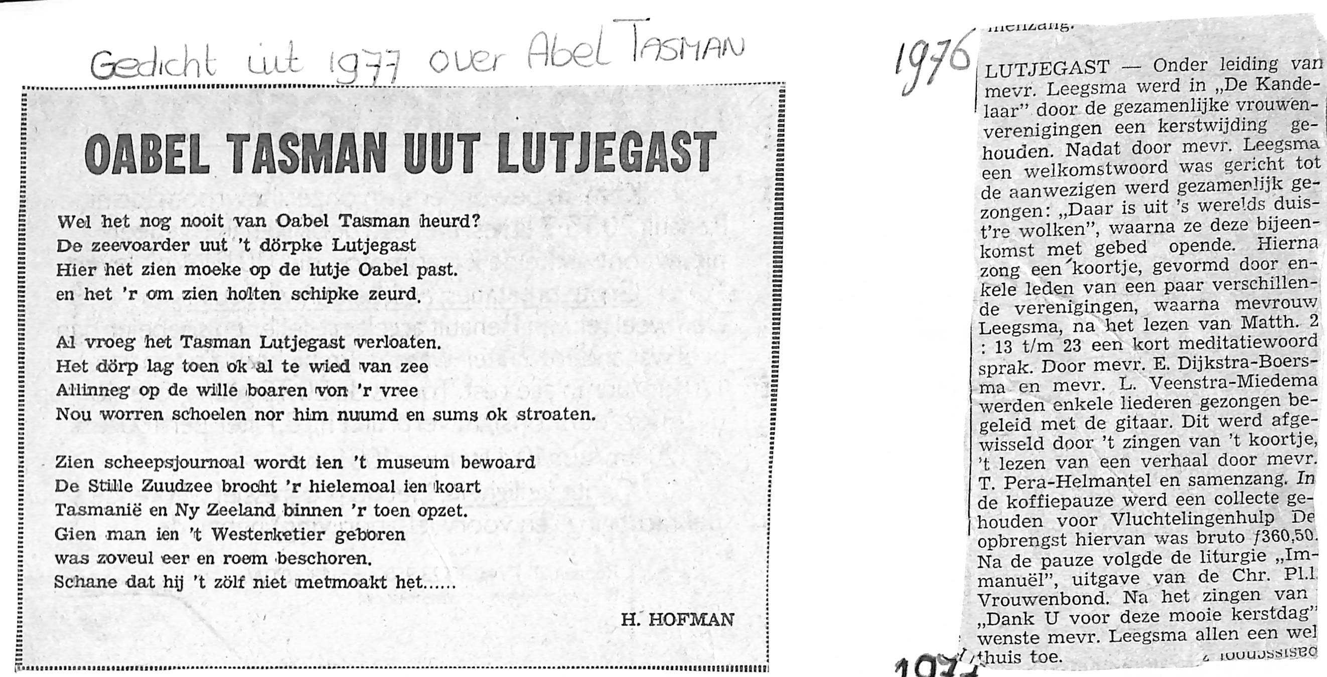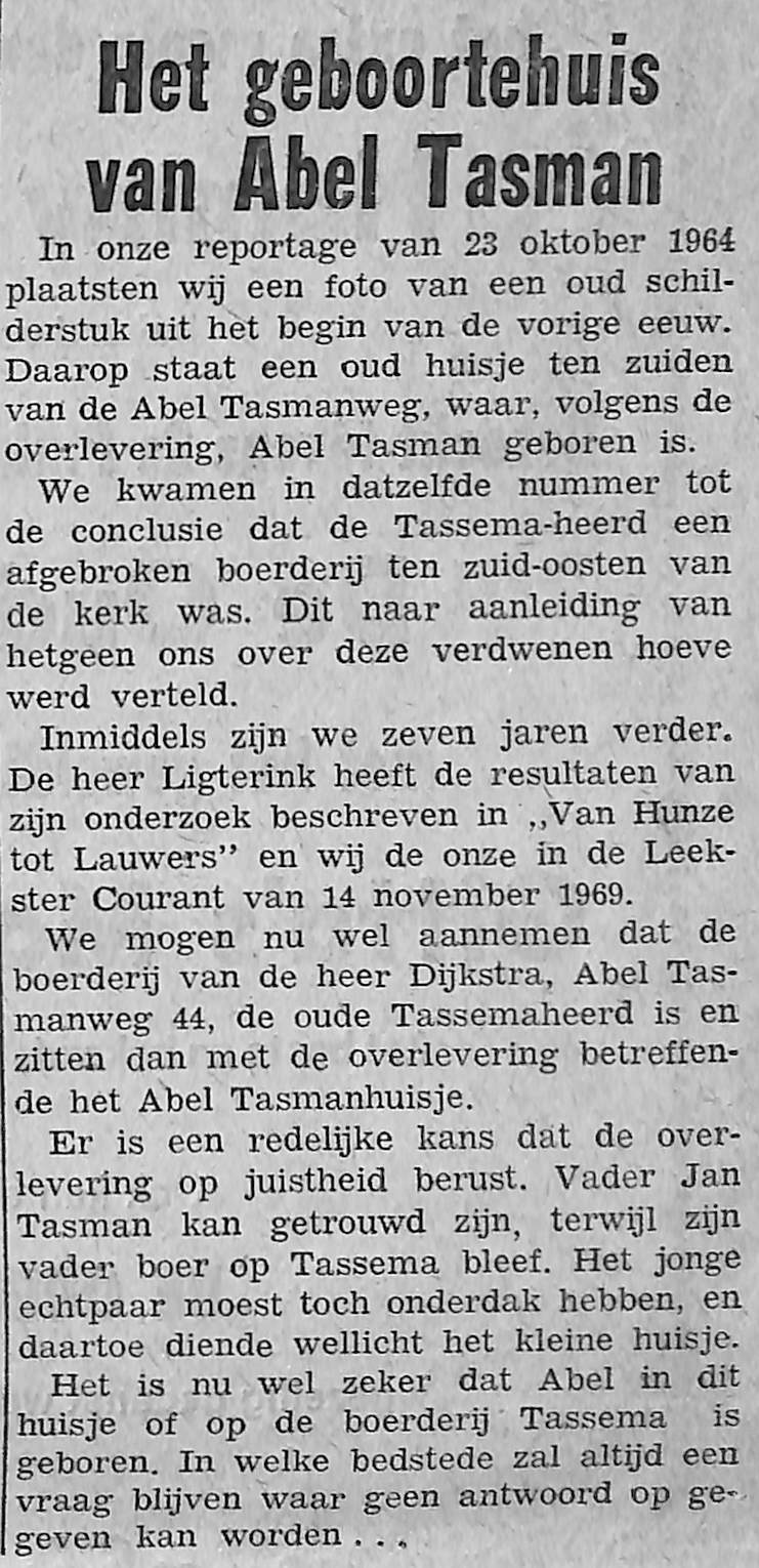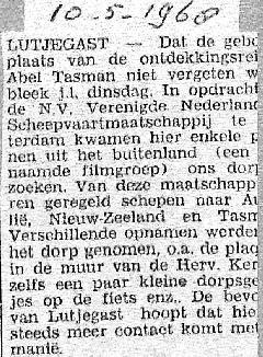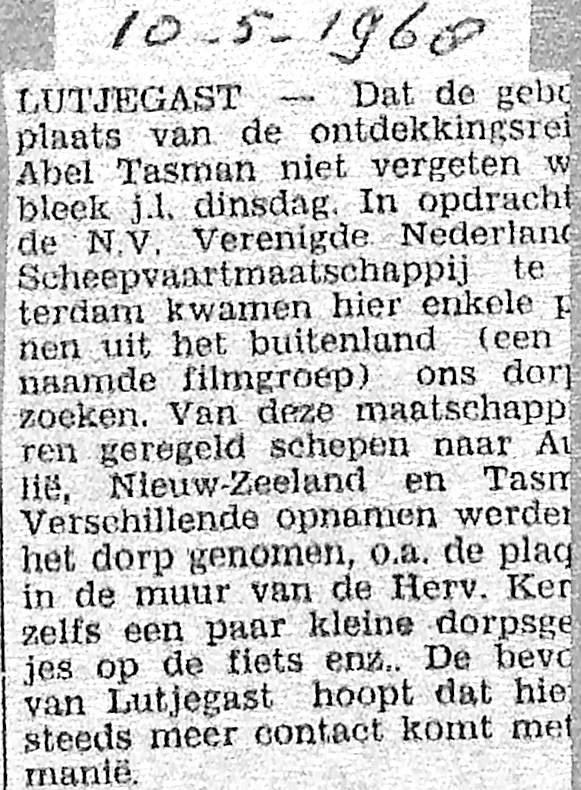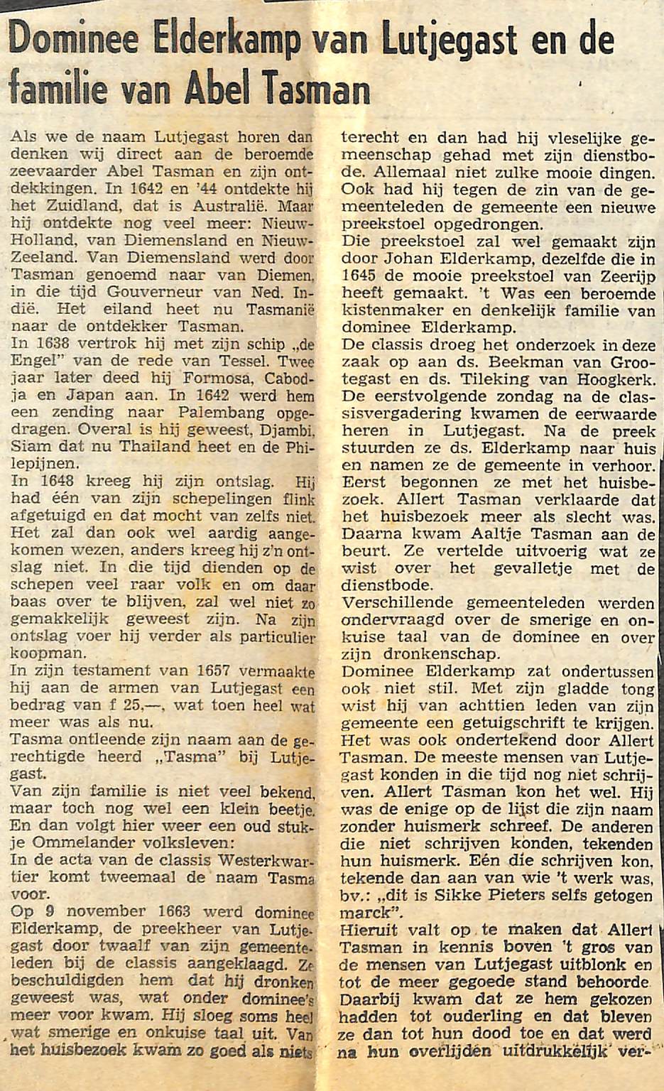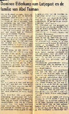 eerst een stukje over Abel Tasman zijn reizen en dan over een periode dat ds. Elderkamp dominee was in Lutjegast en hier het wel en wee van. Was ook op bezoek bij Allert en Aaltje Tasman