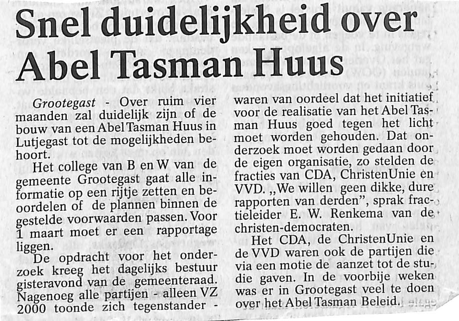 De bewoners staan niet te trappelen voor een Abel Tasmanhuis.