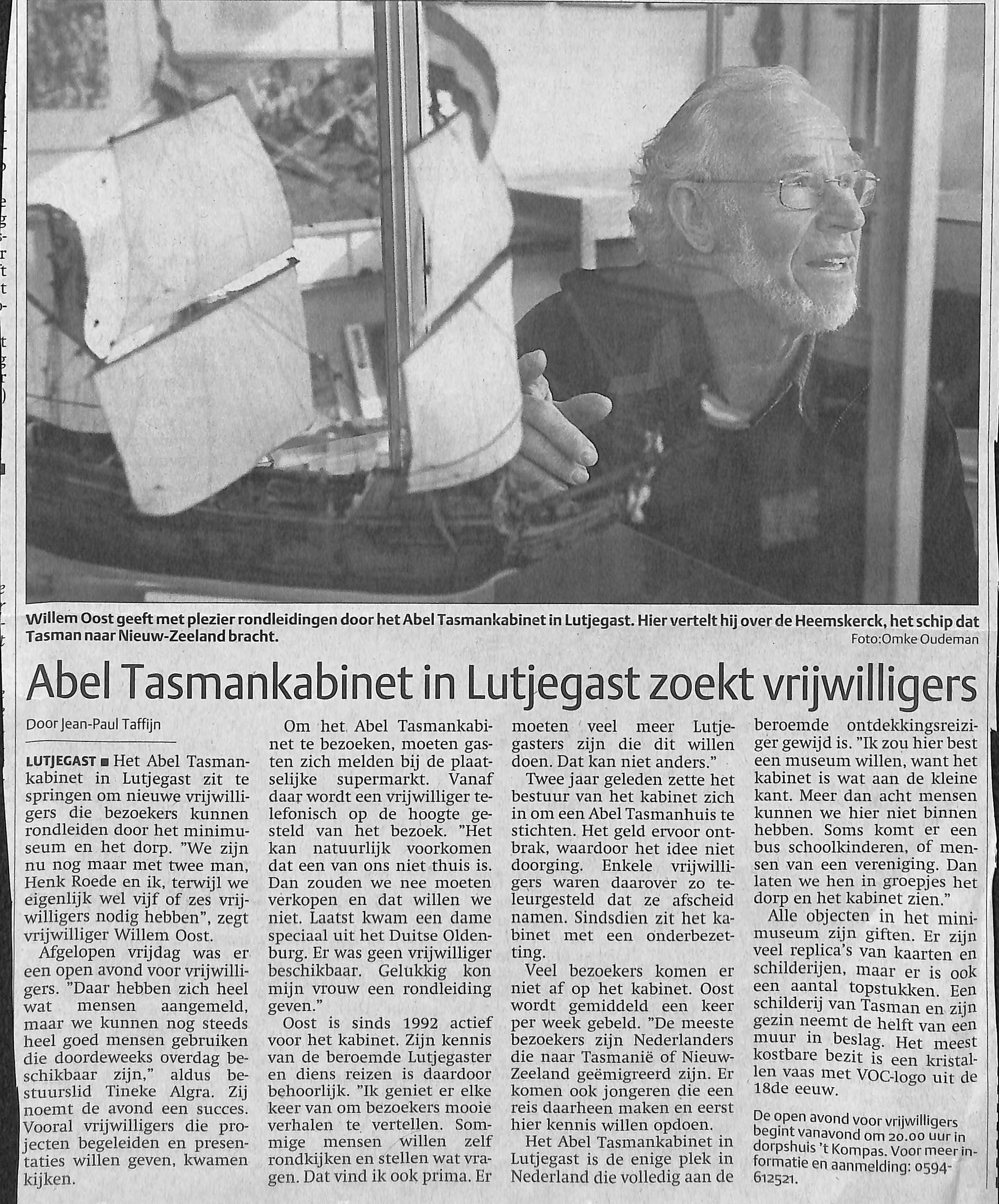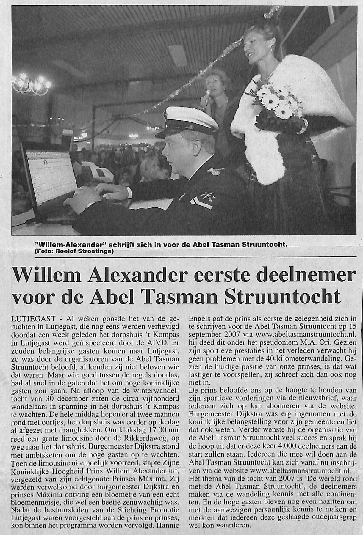 Willem Alexander eerste deelnemer voor de Abel Tasman Struuntocht