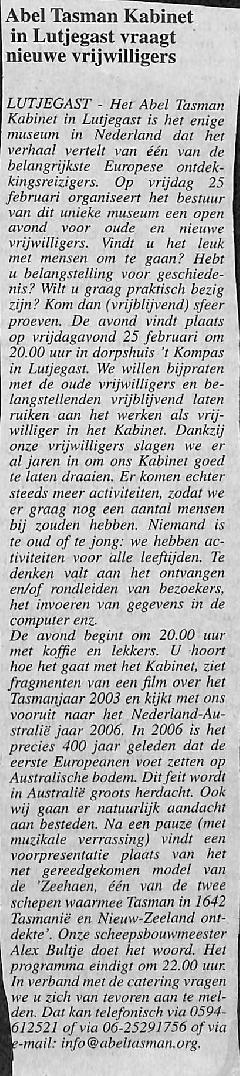 kanon kan wegens plaatsgebrek niet geplaatst worden in Lutjegast,