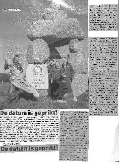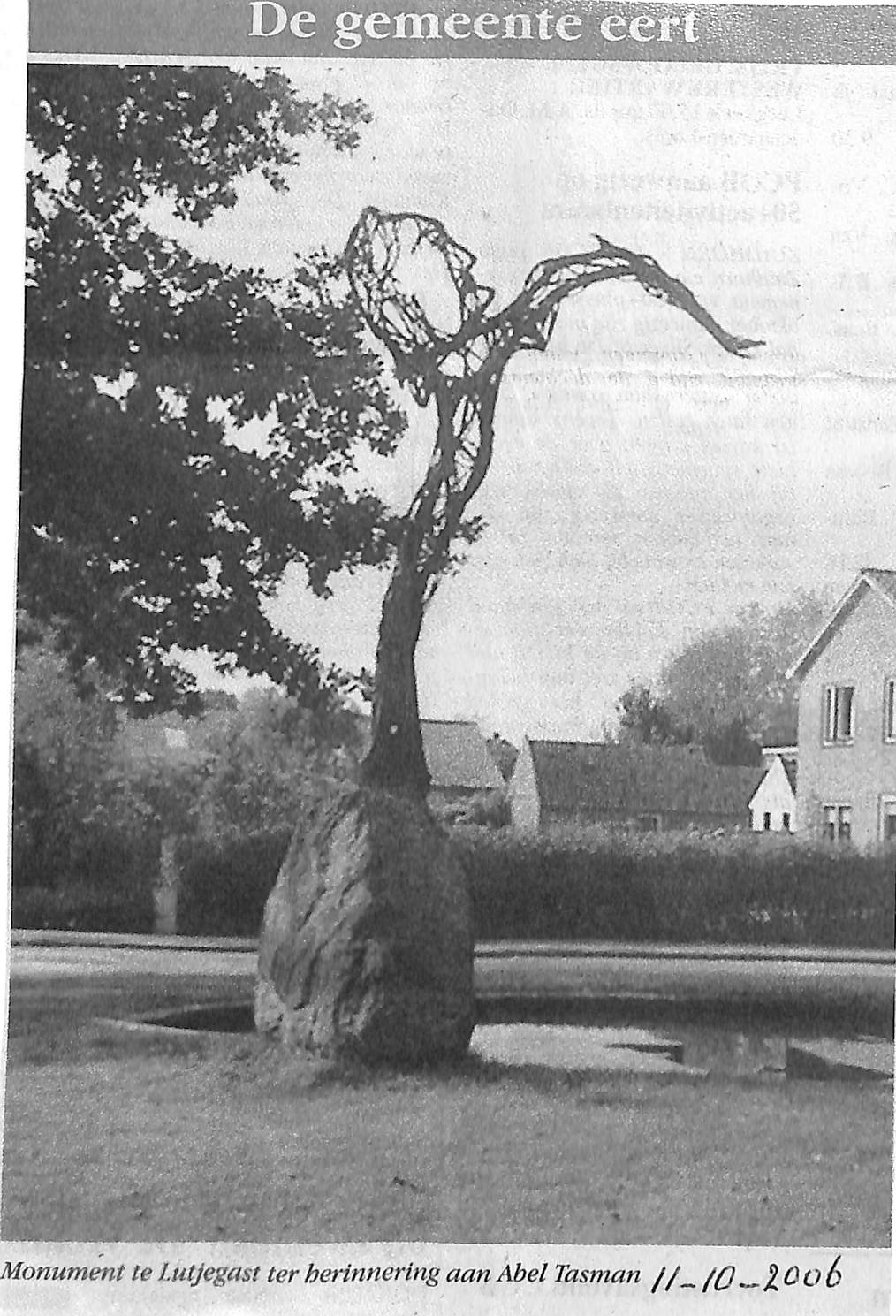 (De stevige grond van Groningen, (de steen) de uitgestrekte figuur, die met lange armen het onbekende zocht, en in de vijver de ontdekking van Nieuw Zeeland. red.)