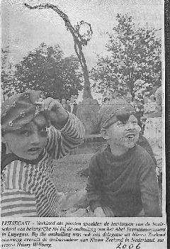 Kinderen openen de schatkist en onthullen daarmee het monument.