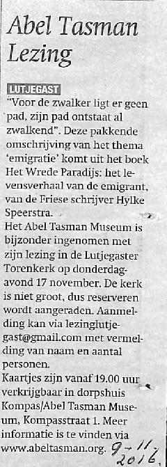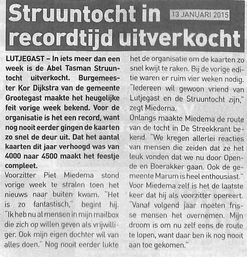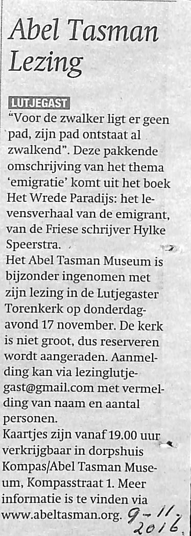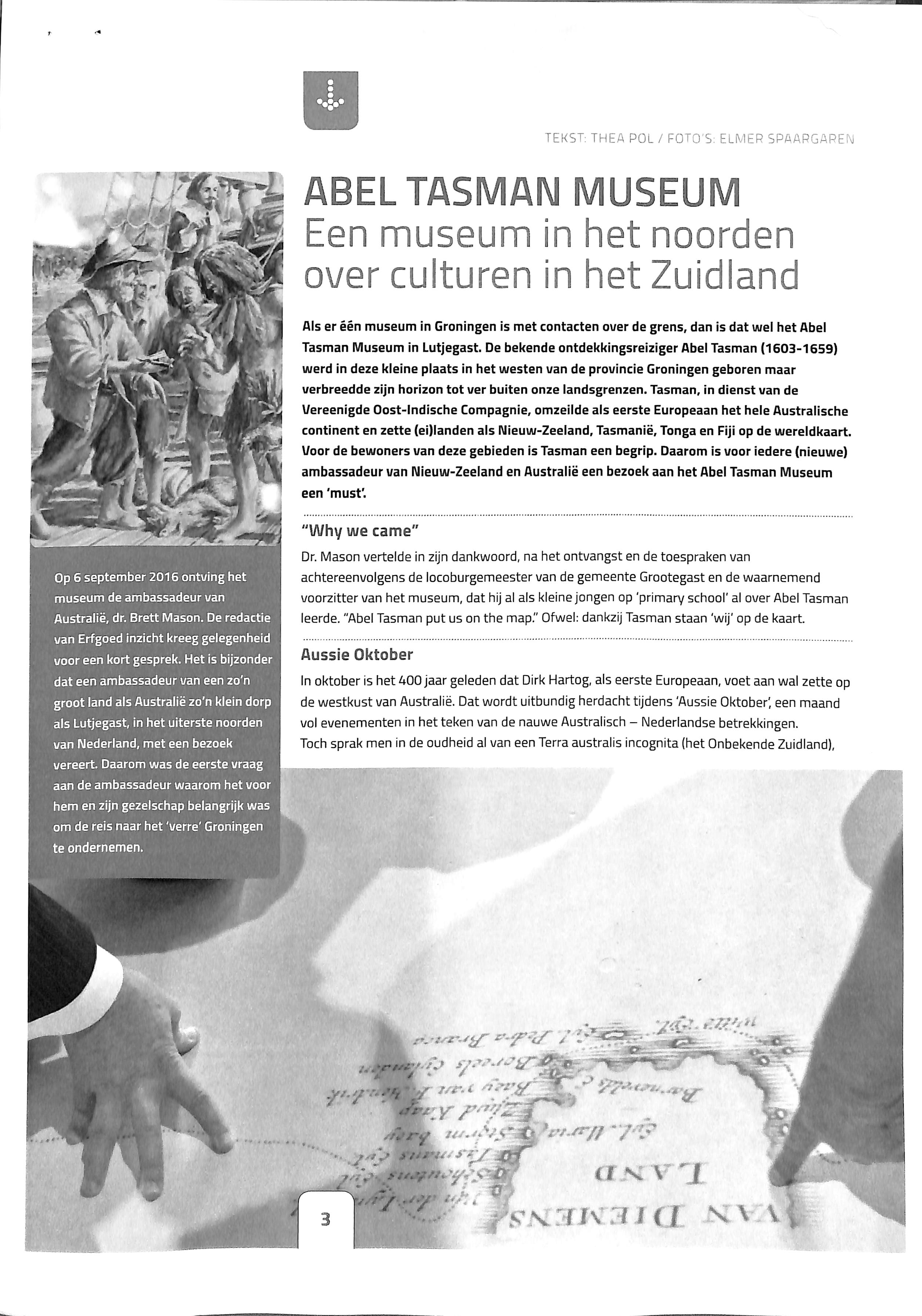 plaatsvervangende burgemeester Ard van der Tuuk doet veel voor de gemeente is is meerdere keren in Lutjegast geweest en heeft o.a. uitgebreide uitleg gekregen over Abel Tasman in het museum.