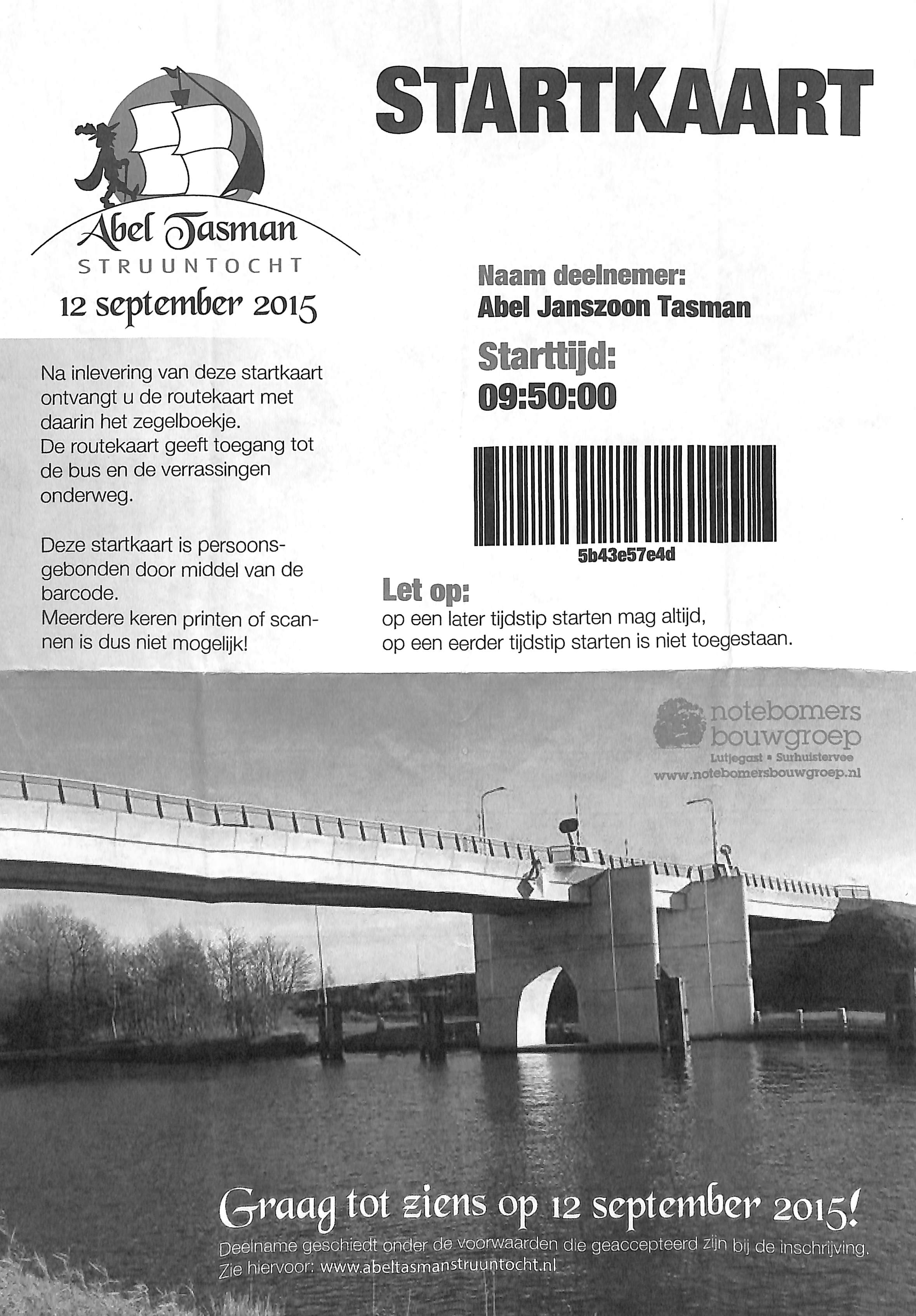 Startbewijs van Abel Jansz. Tasman om deel te nemen aan zijn 4e struuntocht.