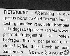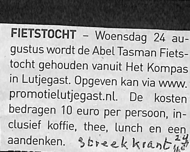 Om het wachten de bekorten is er nu de 1e Abel Tasman fietstocht