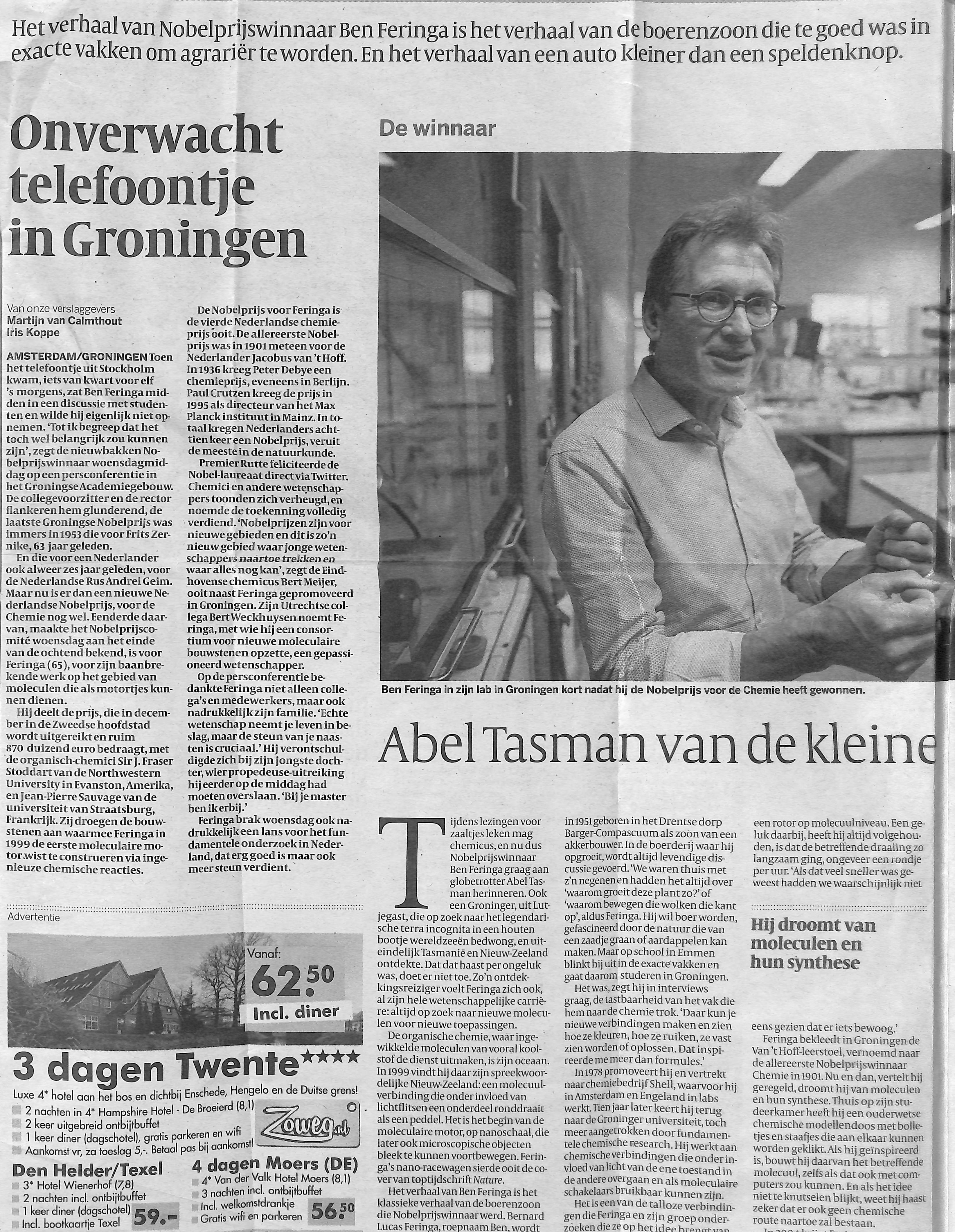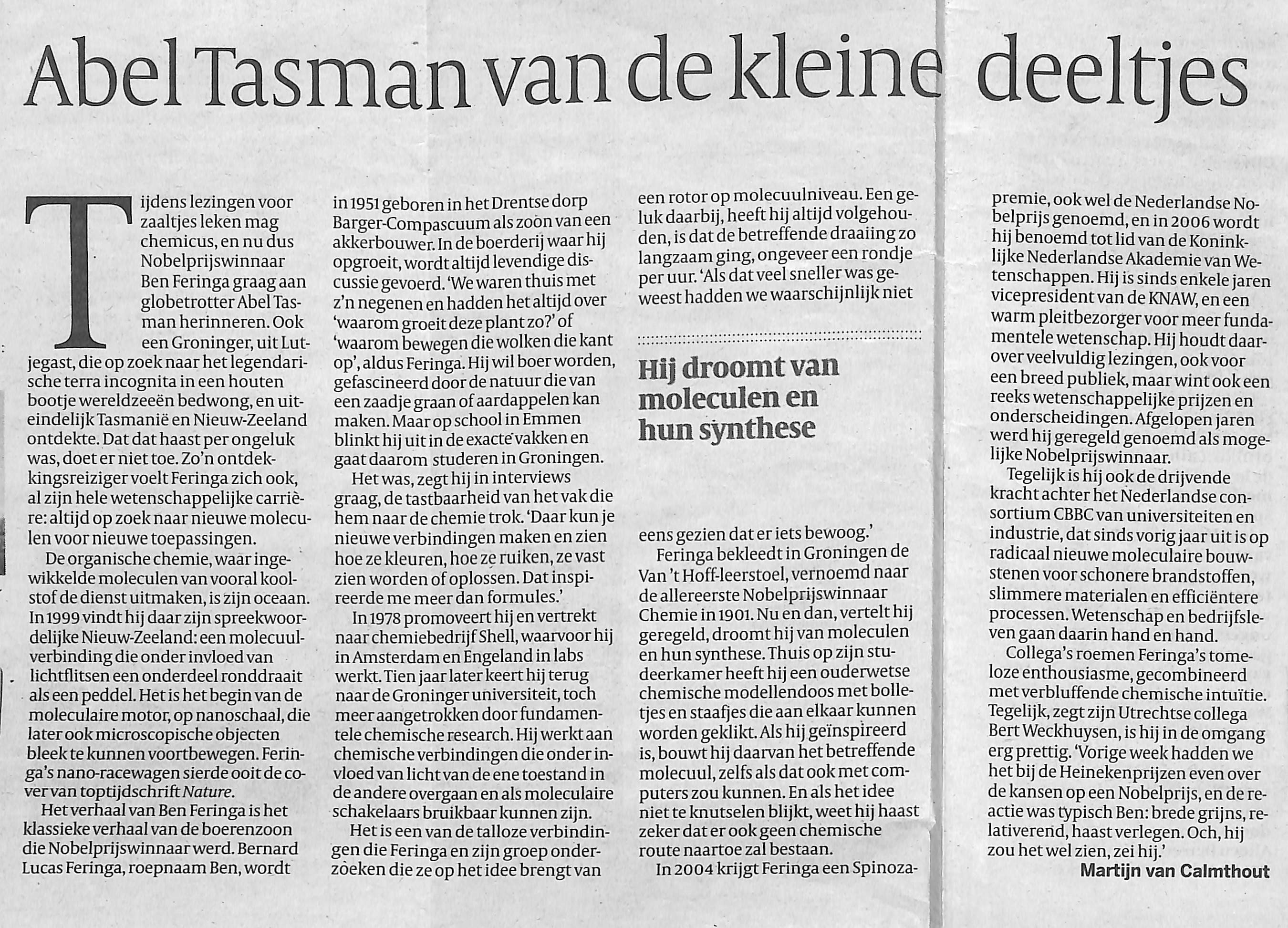 Ben Feringa, de Abel Tasman van de kleine deeltjes