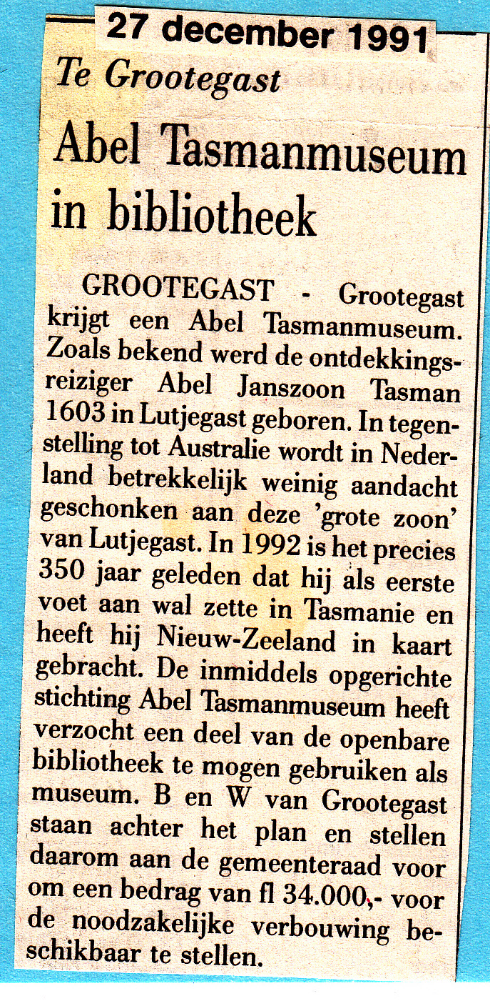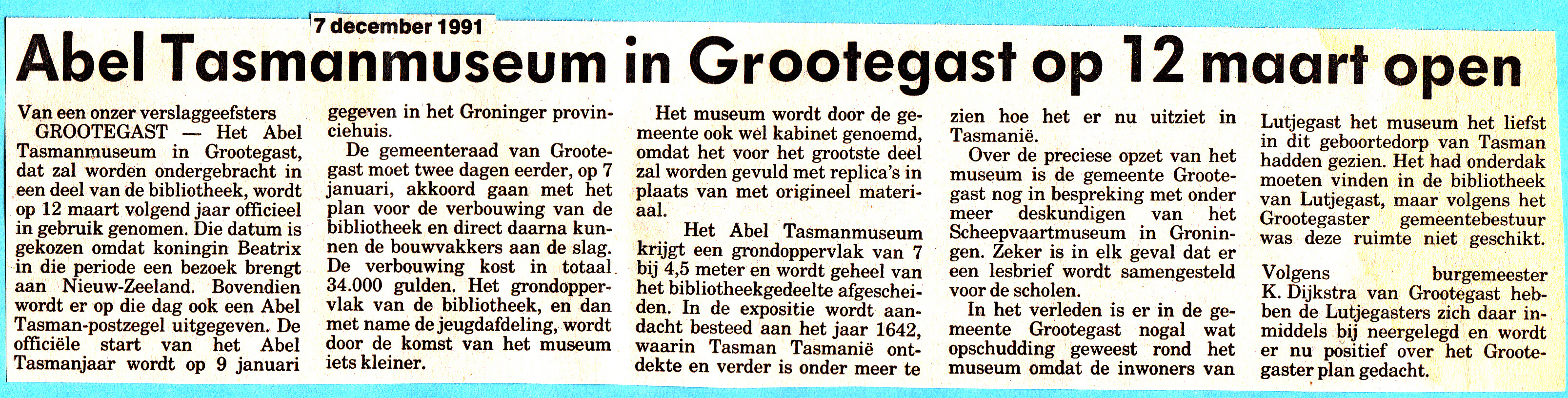 f 34.000,00 voor Tasman bibliotheek in Grootegast.