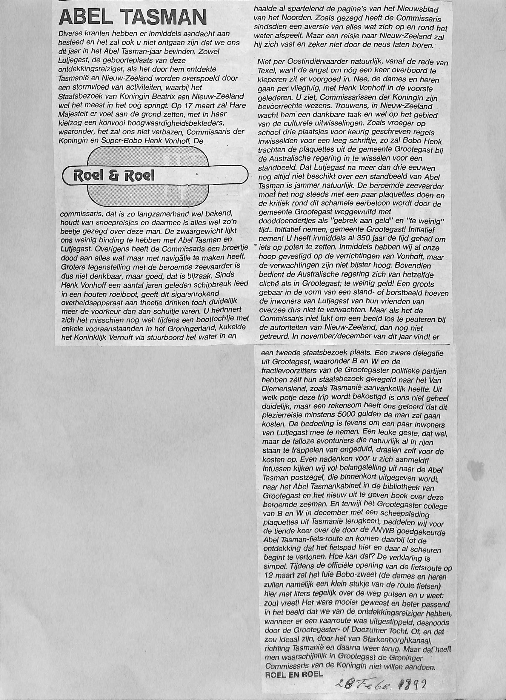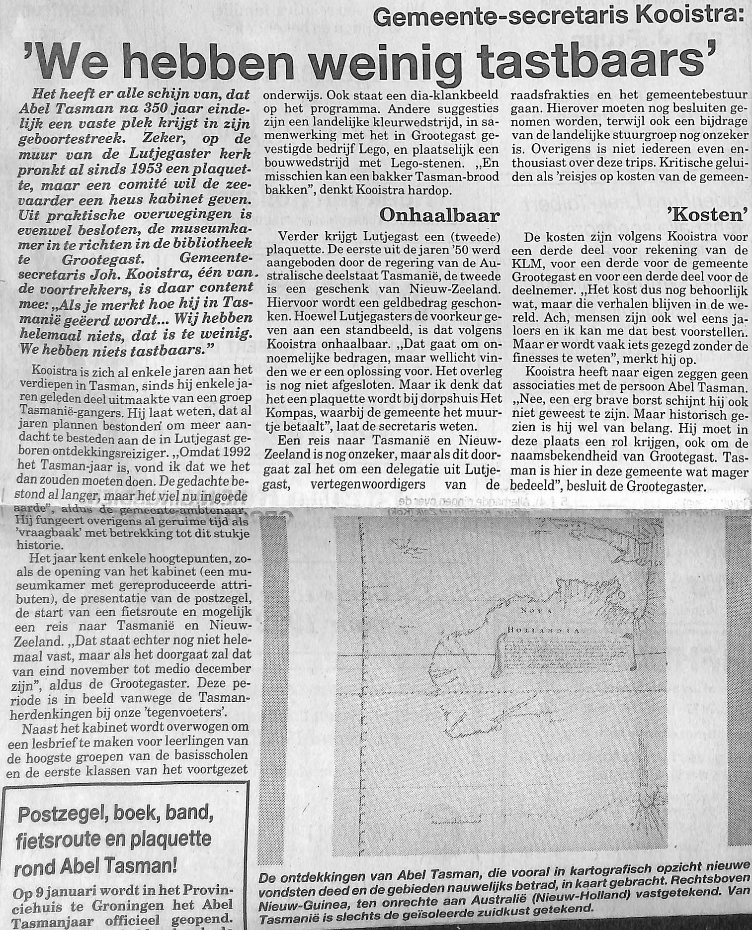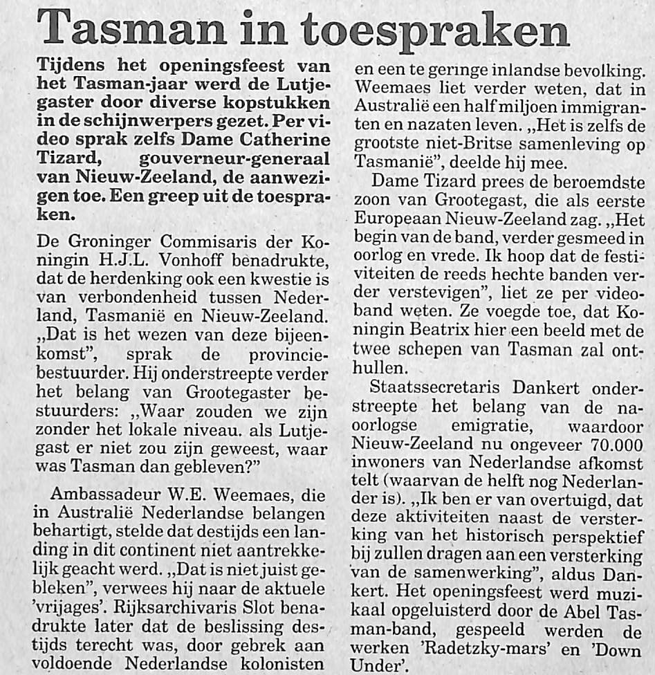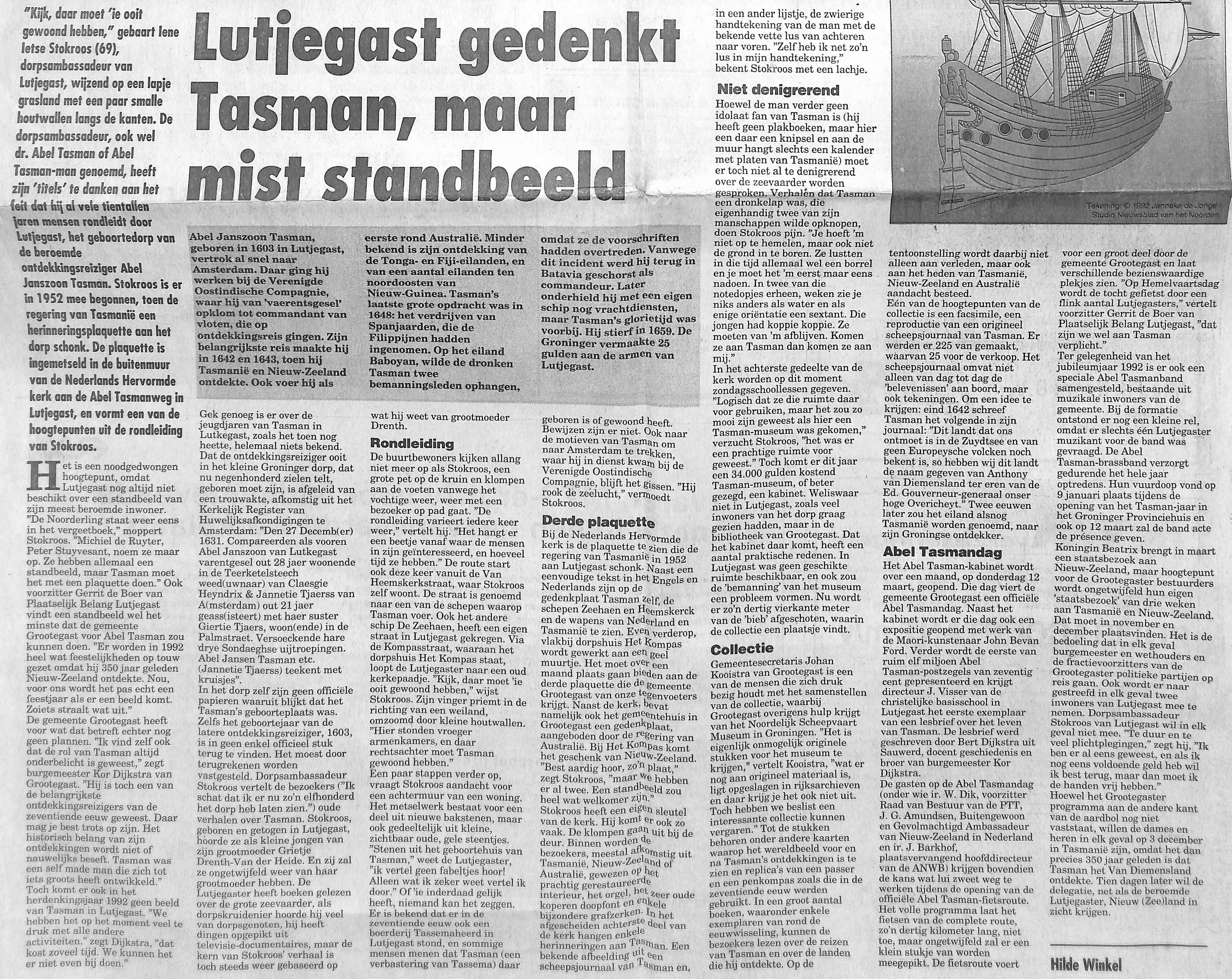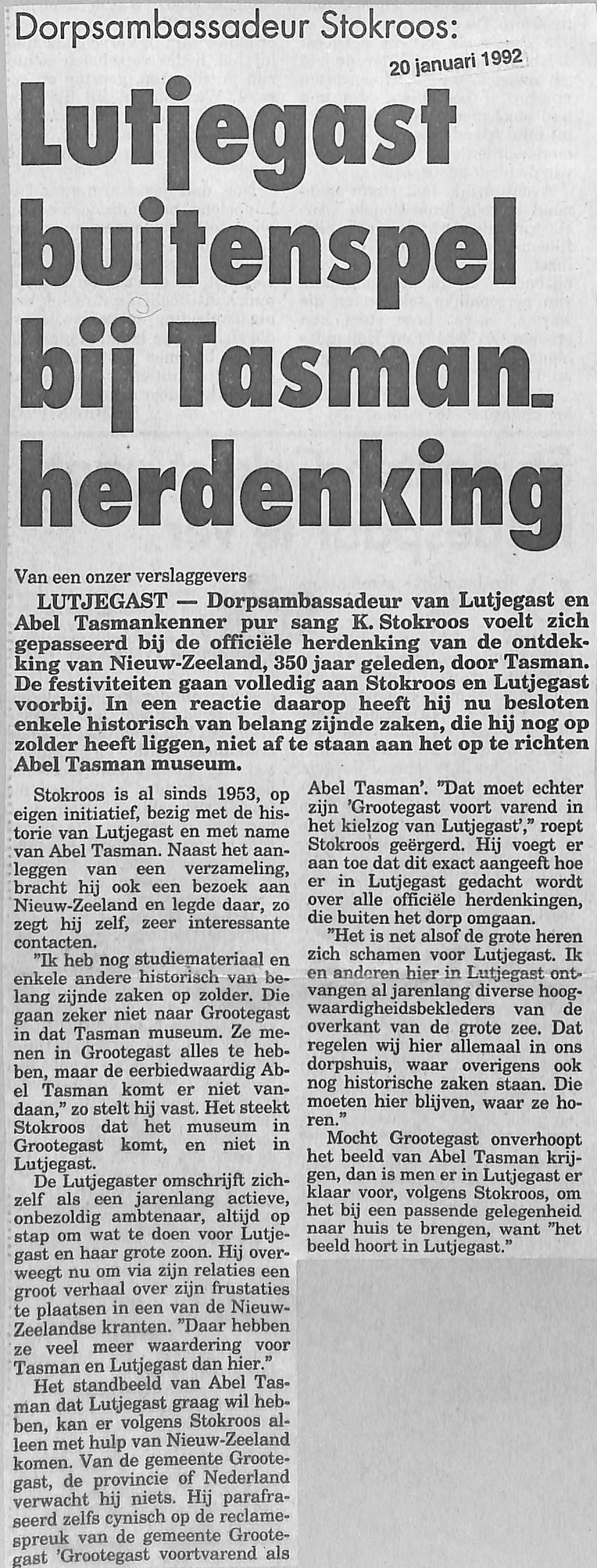 Lutjegast buitenspel Tasman herdenking, volgens Iene Stokroos.