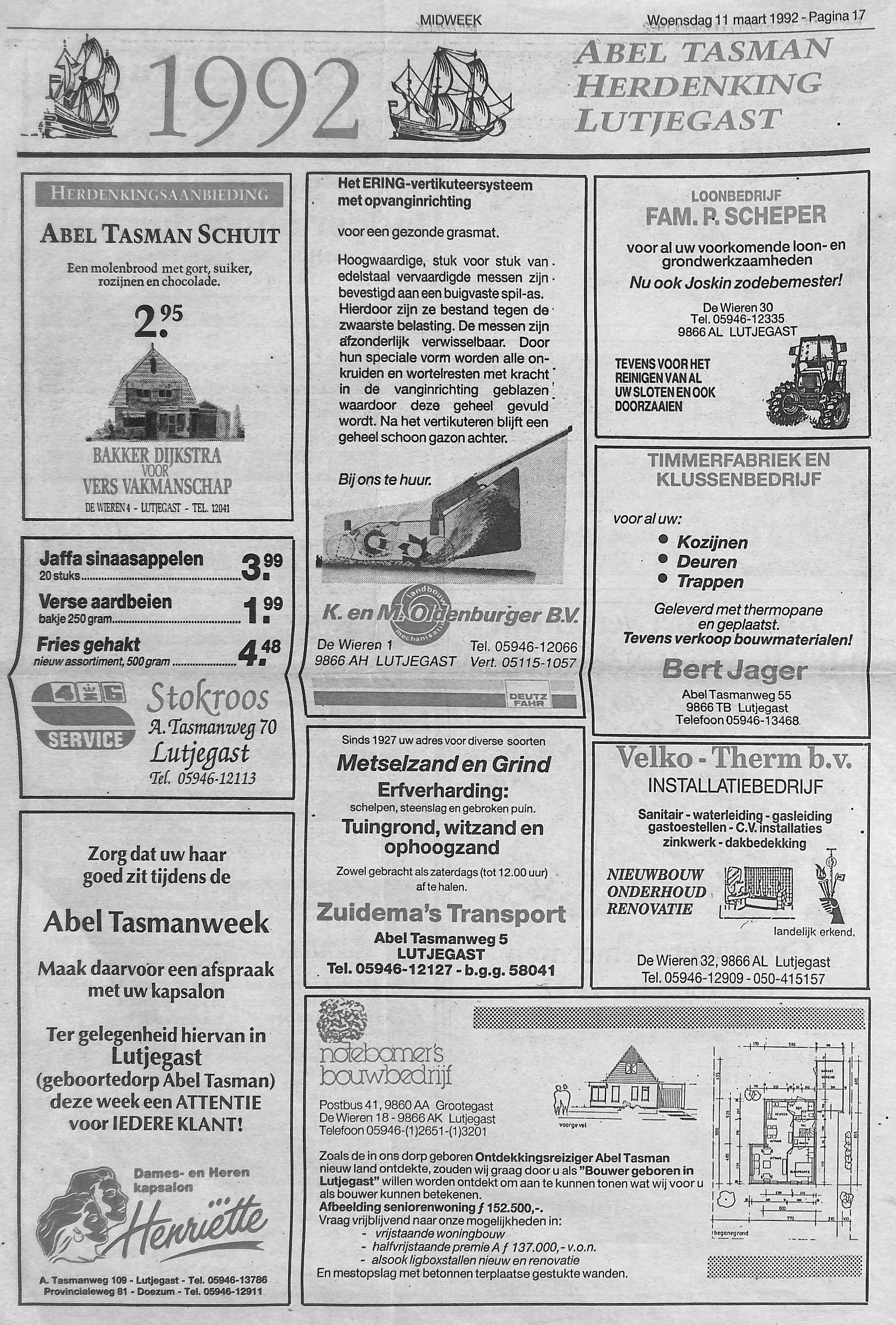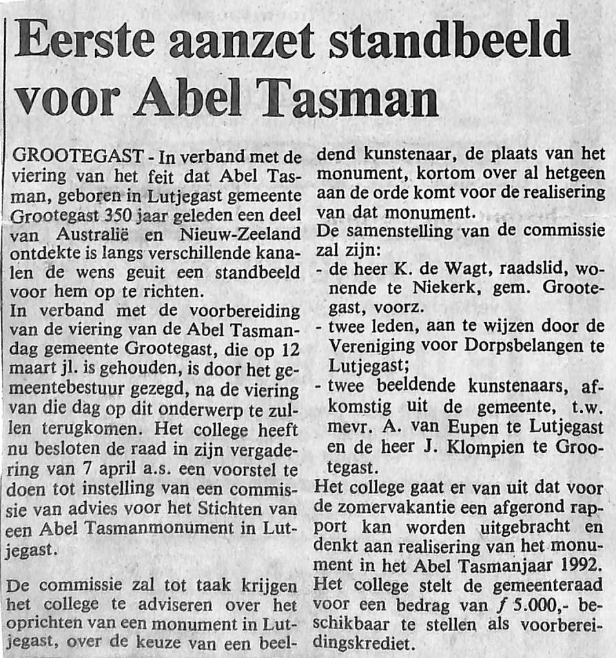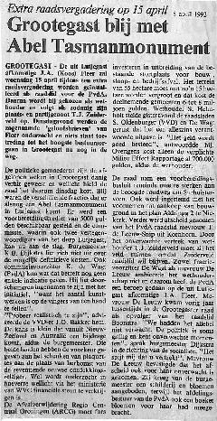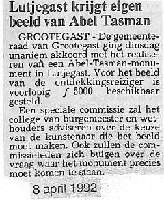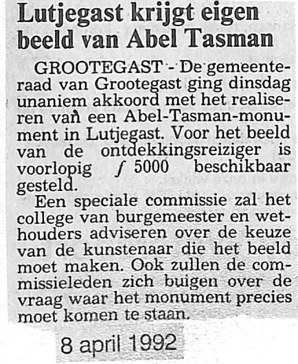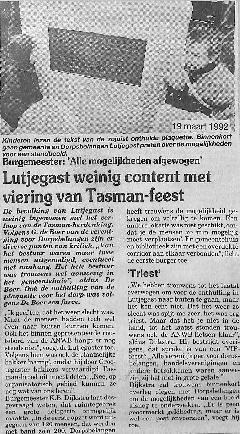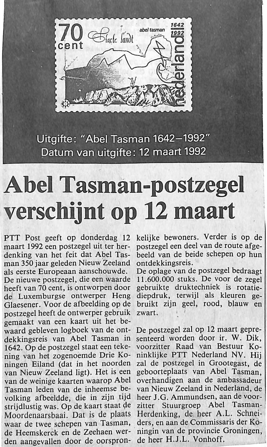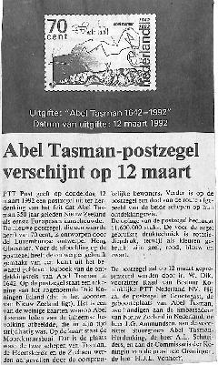 Abel Tasman postzegel verschijnt op 12 maar 1992