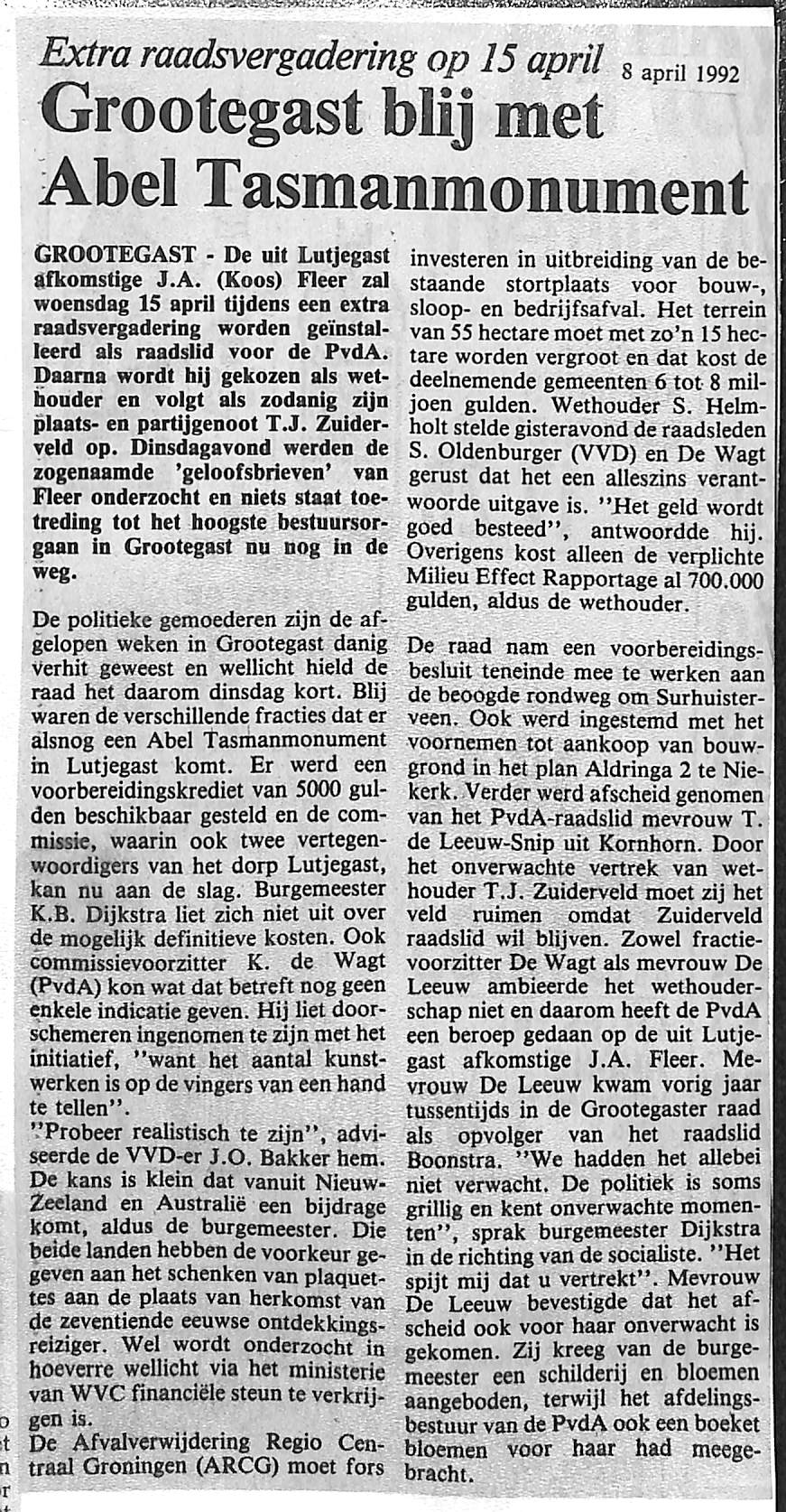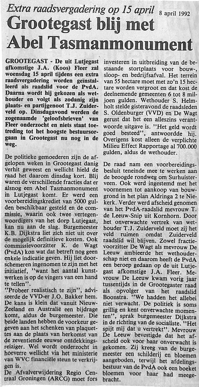 Grootegast blij, extra raadsvergadering, J.A. Fleer, T.J. Zuiderveld, K.B. Dijkstra, J.O. Bakker, S. Helmholt, S. Oldenburger, dhr. de Wagt, T. de Leeuw-Snip, dhr. Boonstra