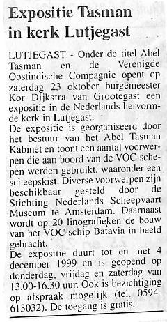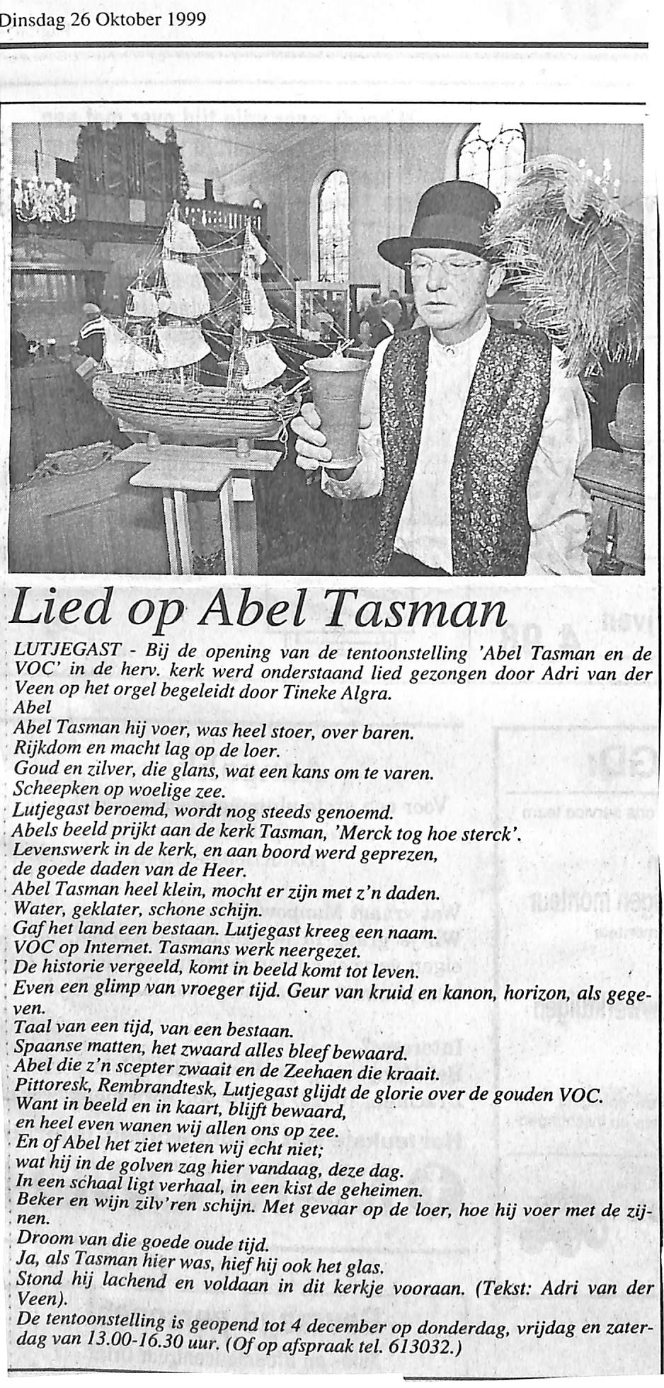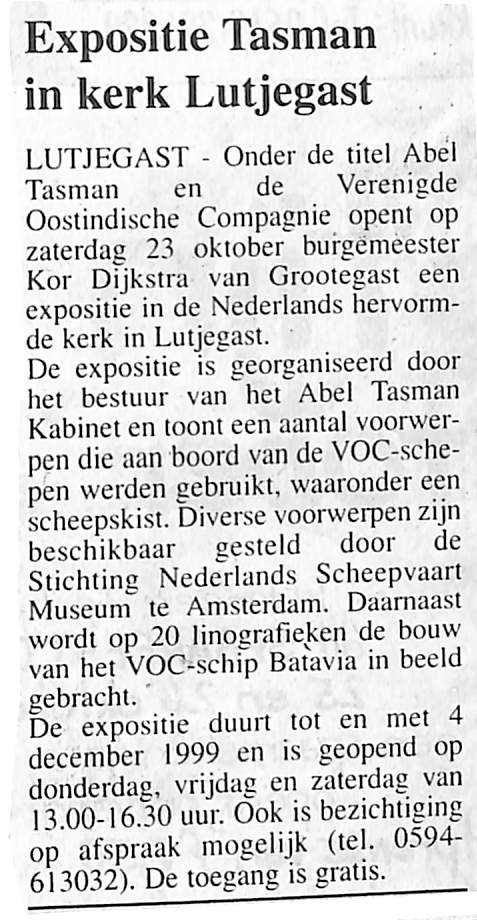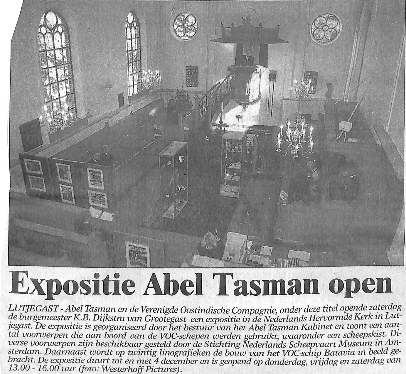Expositie over Abel Tasman in de Hervormde Kerk