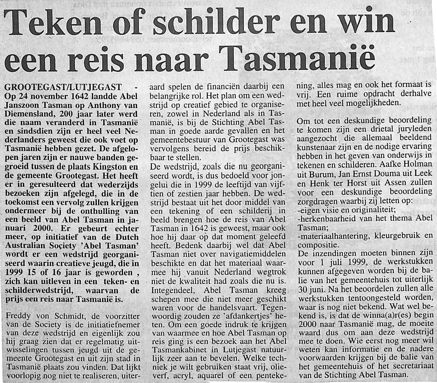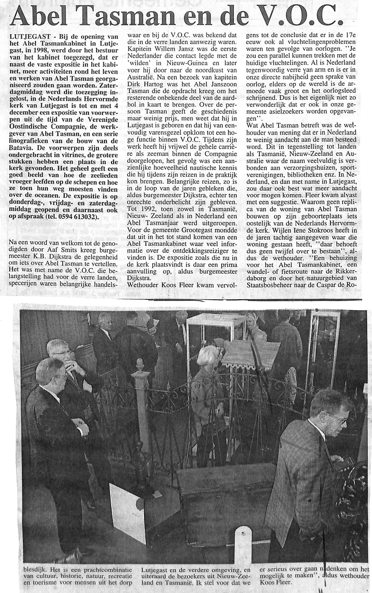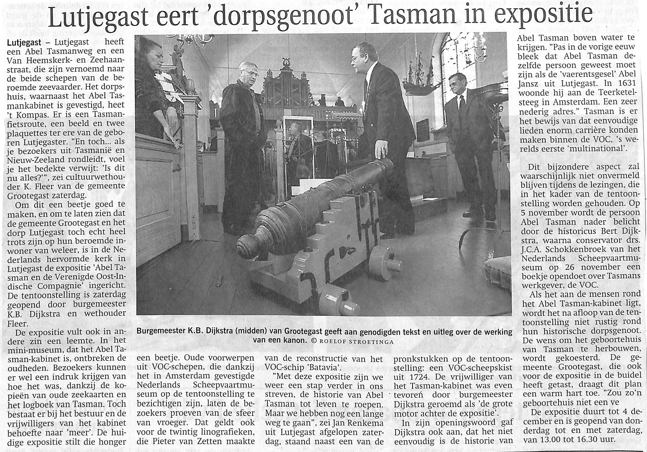 Expositie over Abel Tasman in de Hervormde Kerk