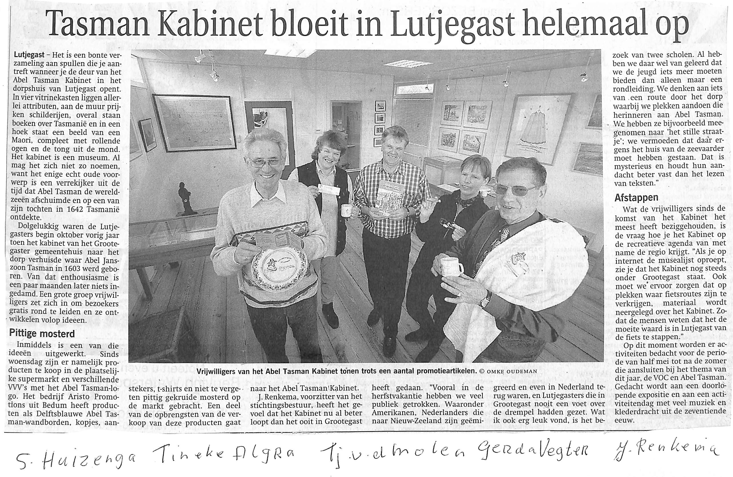 vlnr. S. Huizinga, Tineke Algra, Tj. v.d. Molen, Gerda Vegter en J. Renkema.