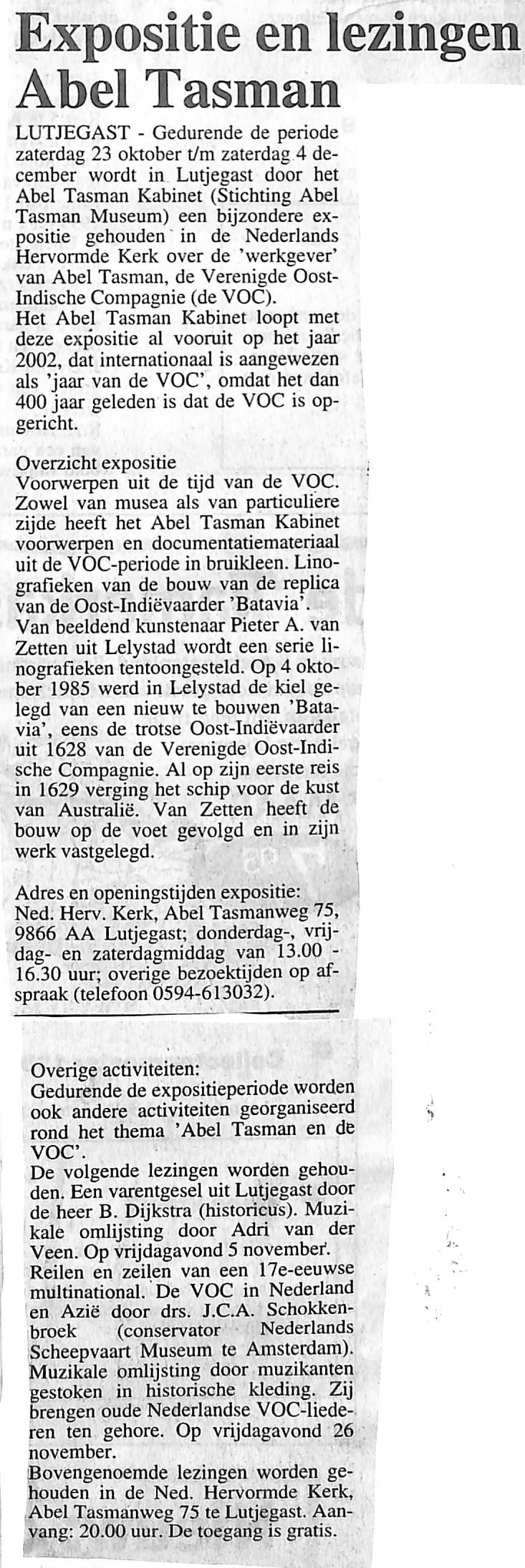 Expositie Abel Tasman