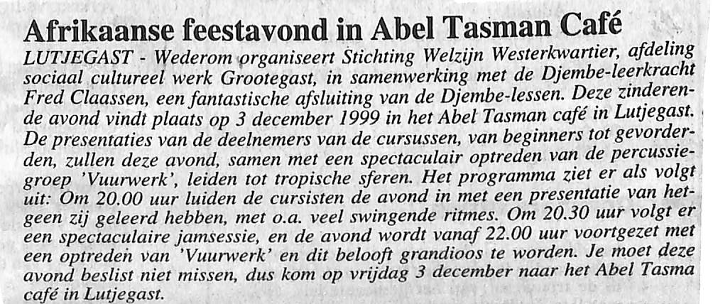 afsluiting djembe lessen met Afrikaanse feestavond.