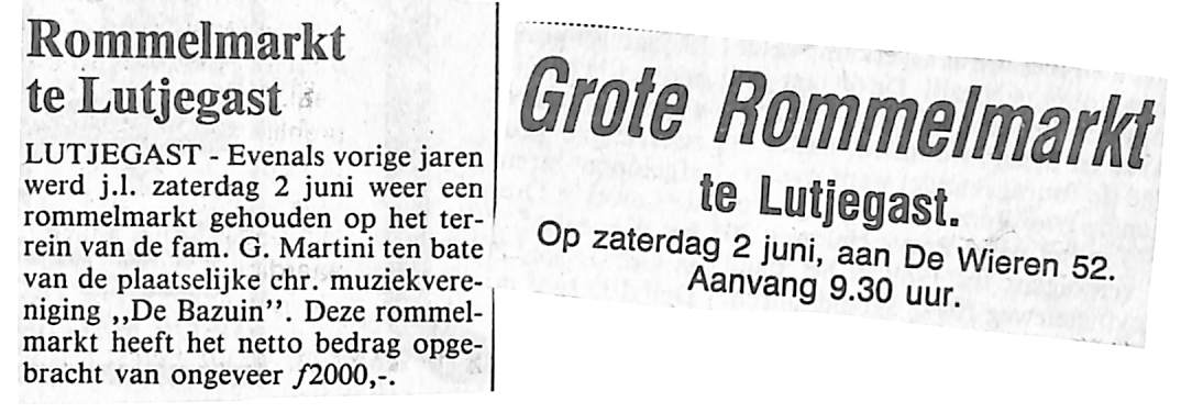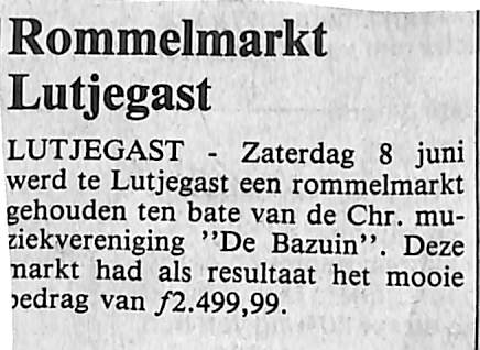 opbrengst rommelmarkt voor De Bazuin f 2.499,99
