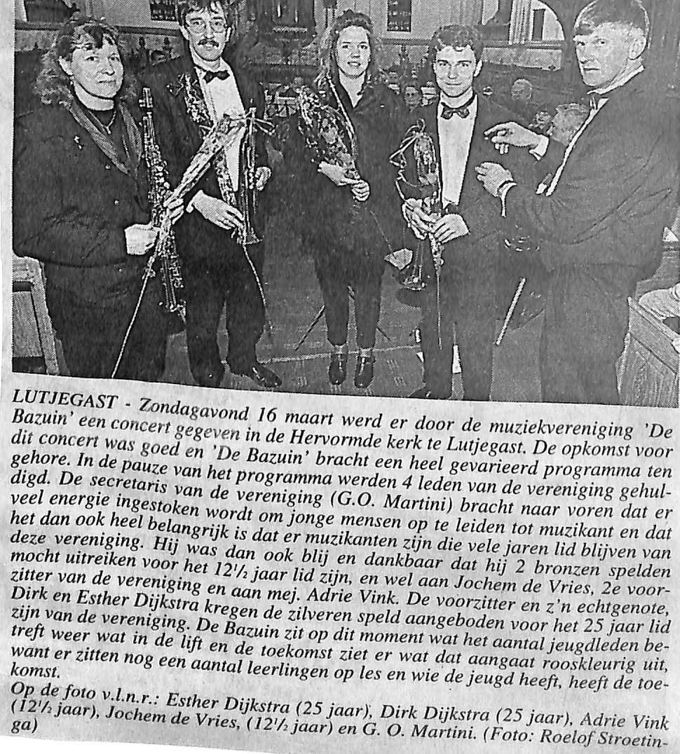 De Bazuin gaf concert in de Hervormde Kerk, G. O. Martini,, Adrie Vink, Dirk en Esther Dijkstra, Jochem de Vries