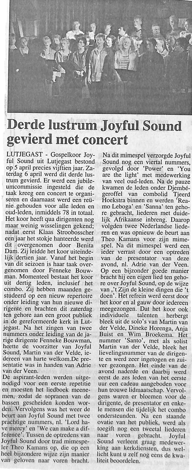 voorjaarsconcert door 'Joyful Sound' en 'De Bazuin' in de Geref. kerk; Menno Haantjes, Benita van Dam